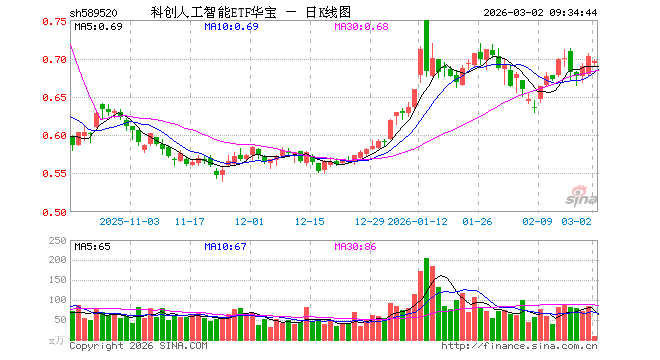 科创人工智能ETF华宝(589520)业绩比较基准为上证科创板人工智能指数收益率,管理人为华宝基金管理有限公司,基金经理为丰晨成、曹旭辰,成立(2025-03-05)以来回报为40.73%,近一个月回报为-0.97%。
