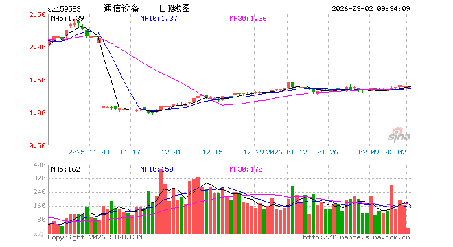 3月2日,通信设备ETF(159583)开盘跌1.87%,报1.363元。通信设备ETF(159583)重仓股方面,中际旭创开盘跌2.62%,新易盛跌3.37%,中兴通讯跌1.79%,天孚通信跌0.50%,航天电子涨1.55%,中国卫星涨1.44%,紫光股份跌1.70%,中航光电涨1.21%,剑桥科技跌3.28%,光迅科技跌2.45%。