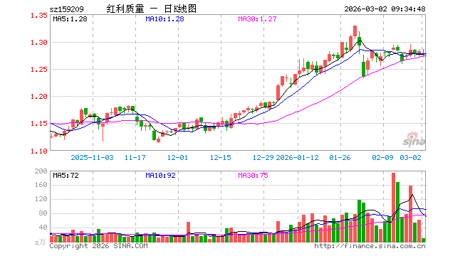 3月2日,中证红利质量ETF(159209)开盘跌0.47%,报1.276元。中证红利质量ETF(159209)重仓股方面,贵州茅台开盘跌0.35%,三七互娱跌1.92%,山金国际涨1.94%,中国神华涨1.96%,美的集团跌0.81%,中国太保跌0.98%,福耀玻璃跌0.08%,亿联网络跌1.60%,云铝股份涨1.60%,双汇发展跌0.38%。