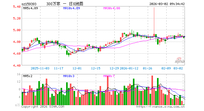3月2日,沪深300ETF万家(159393)开盘跌0.29%,报4.886元。沪深300ETF万家(159393)重仓股方面,宁德时代开盘跌0.30%,贵州茅台跌0.35%,中国平安跌1.08%,中际旭创跌2.62%,紫金矿业涨2.15%,招商银行跌0.39%,新易盛跌3.37%,美的集团跌0.81%,兴业银行跌0.27%,长江电力涨0.31%。