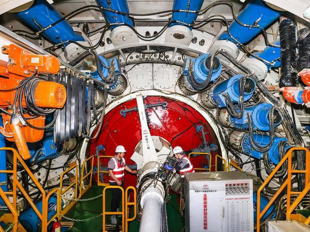 中铁十一局工作人员在调试甬舟铁路金塘海底隧道“定海号”盾构机主驱动。张玺摄