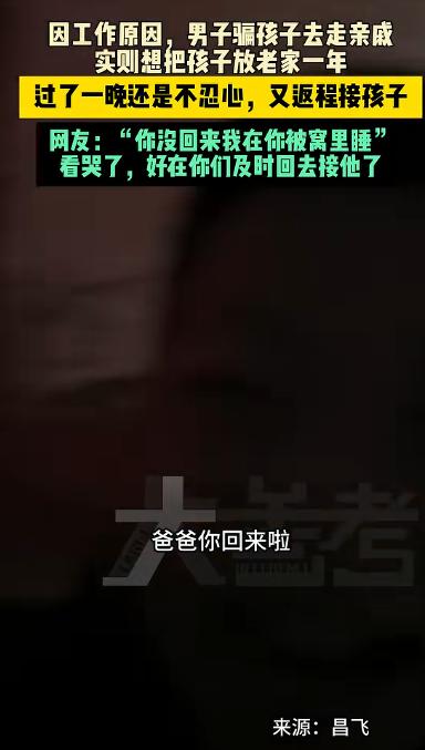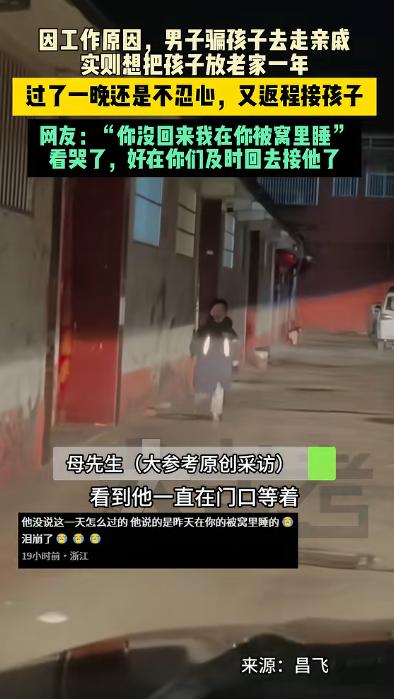 2月26日,山东一对夫妻骗八岁儿子,说去走亲戚一会就回来,儿子趴在车窗外开心地挥手和他们再见,他还不知道这句"拜拜"之后就是2027年见了!开心的是这对夫妻听劝,他们从北京返回了老家山东,而儿子的一番操作戳痛了无数人! 2月26日深夜,北京一间出租屋里没开灯,屋里黑着,只有手机屏幕亮着冷光,夫妻俩一遍遍看着刚发出去的那段视频,画面里,儿子趴在车窗上,冲他们笑着挥手,说了句“拜拜”。 这时候的孩子还是单纯的以为爸爸妈妈就是出去,很快就会回来的,根本不知道,这是被提前安排好的一年的告别。 依他们的计划,夫妻俩从山东老家返京务工,单程七百多公里,白天二人轮流驾车,强撑着情绪,当后视镜中儿子的身影渐小,脸上的笑容再也难以为继,只是谁都心照不宣。 视频发出去,本来只是情绪宣泄,没想到几个小时后评论区直接炸了,上万条留言涌进来,有劝的,有骂的,也有掏心窝子讲自己经历的,很多人不是在指责,而是在提醒。 一个五十多岁的父亲说,他当年把一岁的儿子留在老家,等到十一岁才接到身边,结果孩子变得沉默寡言,父子之间像隔着一堵墙,几十年都没真正亲近过。 还有一位七十多岁的老人,说自己小时候被父母锁在家里,一个人害怕到尿裤子,那种被丢下的感觉,他记了一辈子。 一条条留言看下来,夫妻俩心里发紧,大家也提到,现在外来务工人员子女是可以随迁入学的,中高考政策也在逐步放开,并不是非得把孩子留在老家,原来他们以为“没办法”的选择,其实未必真是唯一出路。 愧疚一下子压了上来,两人几乎没商量,半夜收拾东西,重新上车,往山东赶,七百多公里的路,又是一趟十几个小时的硬撑,只喝矿泉水、啃面包,心里只有一个念头,赶在孩子真正变成“留守儿童”之前,把决定改回来。 车子再次开进村口时,他们已经想好要怎么跟孩子说,可真正让他们崩溃的,不是离别本身,而是孩子的懂事。 儿子既没有哭闹,也无埋怨,只是轻拉爸爸的手,低声道,“你们昨晚未归,我睡在你被窝,权当你在身旁”,此言一出,二人的心理防线瞬间崩塌。 原来所谓的“善意谎言”,孩子第一晚就看明白了,他只是装作不知道,配合着挥手、配合着笑,是怕爸妈为难,大人以为瞒得很好,其实孩子什么都懂,只是把难过咽进肚子里。 那一刻,他们彻底想通了,再苦再累,也不能用孩子的童年来换,北京的生活压力还在,工作也不会轻松,但一家人在一起,总比分开强。 他们当场决定,把孩子一起带走,原本两个人北上的计划,变成了三个人的出发,那场差点发生的分离,被无数陌生人的提醒按下了暂停键。 有些决定,晚一步就是遗憾,一家人坐进车里重新上路时,没人再提“一年后再见”,这次,是一起出发。 信息来源 :大参考