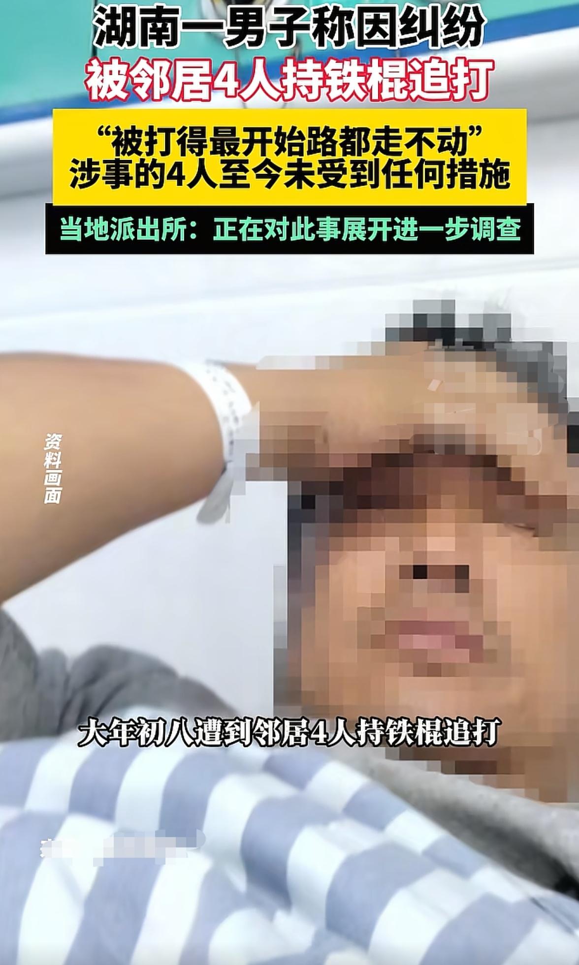“万万没想到!” 2月24日,湖南永州, 一男子见邻居家已经两三年没回来住,便把杂物堆在邻居院子里,结果邻居突然回来,说要入住,直接炸锅了。 大年初八的祥和氛围,竟被一场恶性邻里冲突彻底打破。2月24日,湖南永州蓝山县毛俊水库移民区,发生了一起令人咋舌的暴力事件。 就因为这堆杂物,双方互不相让,从口角演变成四人围殴一人,甚至还持钢管伤人,下手那叫一个狠。可事后警方处理却让人看不懂,打人者没当场被控制,后续进展也缓慢。 李先生虽有错在先,但也不该被这么狠揍啊。再大的气也不能动手违法。 大家觉得警方这处理,能让受害者满意吗?
