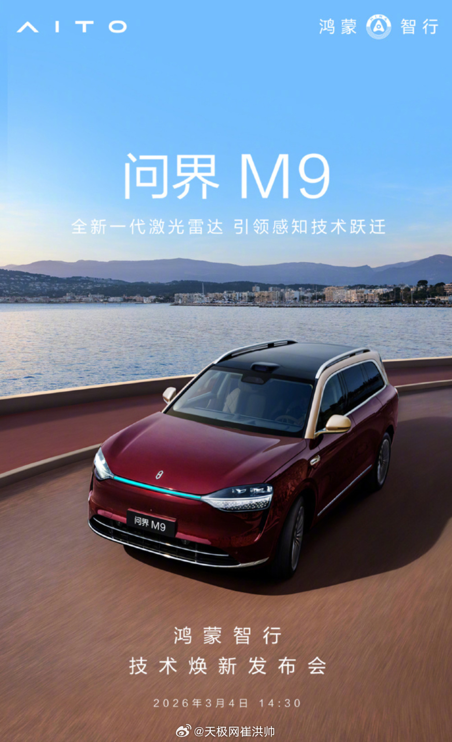 尊界 S800、问界 M9 汽车都将首发搭载全球量产最高线束激光雷达