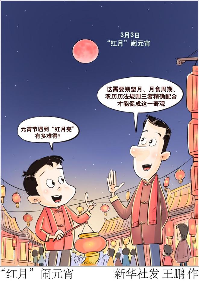 新华社图表,3月3日将迎来农历正月十五元宵佳节,当晚还将邂逅一次难得的月全食。