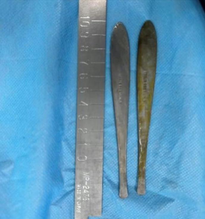 离谱!小伙腹痛CT查出肠道卡着两把勺子 南京一位28岁小伙因为腹痛去医院,一查CT直接把人看懵了,肠道里居然卡着2把12厘米长的勺子! 他自己说是吃新疆食品时不小心吞下的,一开始还以为只有一把,结果肠镜一照是两把。勺子卡在小肠最窄的地方,黏膜都烂了,再晚点就可能穿孔大出血。医生花了近一小时,才惊险把两把勺子完整取出来。 实在无法理解且难以想象,这到底是怎么吃进去的?勺子又不是糖,吞下去难道一点感觉都没有? 只能说太离谱了!