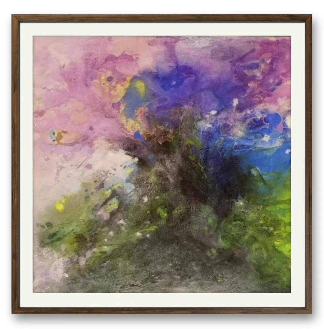 主攻花鸟而不困于花鸟,兼习山水、人物的视野,让其作品突破题材局限,兼具微观精致与宏观空灵。她巧借山水留白造势、人物情志传递之法,使笔下花卉与周遭景致、光影气韵相融相生:或衬浅山远黛,或缀禽鸟翩跹,于有限画幅中营造无限诗意。观者既能沉醉花叶细腻之美,亦能体悟万物共生的生命哲思。