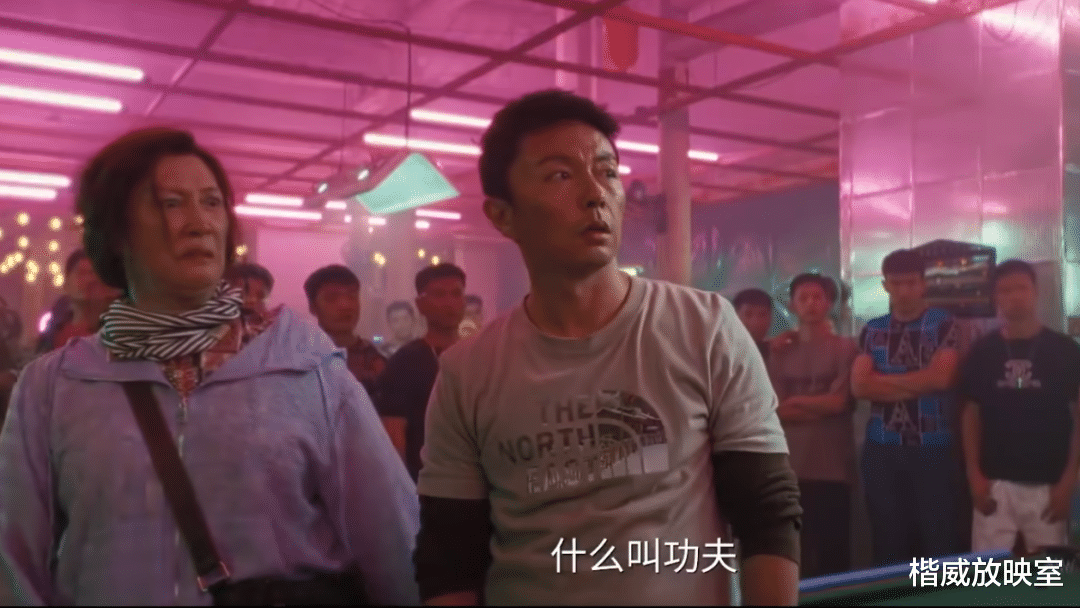 如刚才提到的那样,动作场景的猛烈和高难度会随着查案的深入而提升,陪着丈母娘在台球桌旁边的打戏也算是插曲之一。而当李红旗跟踪秦叶蓉来到对岸的码头上,又迎来两场重磅的打戏。最开始又是两个壮汉合力对打李红旗,后者在开始处于弱势的情况下,逐渐反败为胜,这场动作戏的精彩程度不输李红旗与夫妻俩对打的那场。