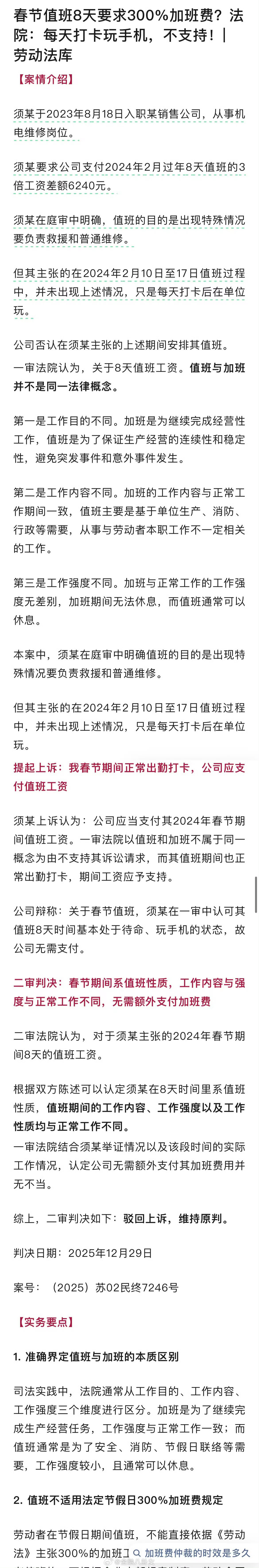 值班不算加班么
