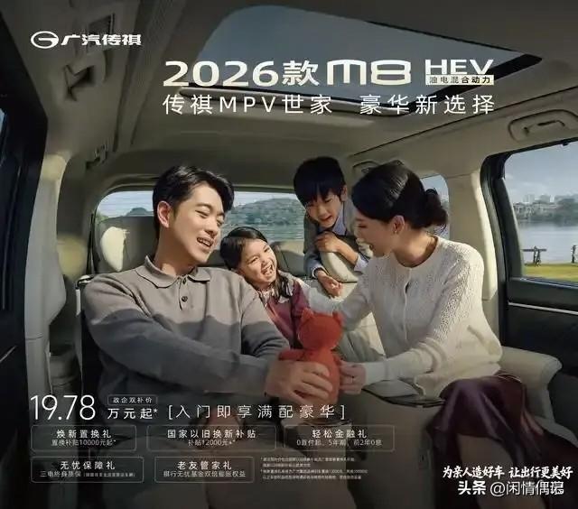 不得不承认!现在选高端家用车的用户,只看长期好用、全家舒服、踏实省心! 1、超70%用户——把全家安全放在第一位 2、65%用户——追求舒适与底盘质感,拒绝颠簸吵闹 3、62%用户——需要大空间、真六座,老人孩子都舒服 4、58%用户——看重续航无焦虑、补能快,不被里程束缚 5、55%用户——在意保值率、可靠性,买车不亏心 如果这五点正是你选车的“刚需”,那2026款传祺M8 HEV可能就是你一直在找的那个“答案”。 安全:全家人的移动堡垒 买MPV最怕什么?怕车太大不好停,怕家人上下车不安全。传祺M8 HEV直接把安全配置拉满:全系标配360°全景影像和透明底盘,停车挪车一目了然;侧滑门自带防夹功能,老人孩子上下车不用担心被夹;再加上全车多气囊和81.7%的高强度钢车身,开起来心里特别有底。 舒适:二排就是“头等舱” 坐过的人都知道,这车最香的是第二排。全系标配“头等舱”座椅,带通风、加热和10点式按摩,还有超长滑轨,腿能完全伸直。底盘调校非常稳,过减速带和坑洼路面,过滤得特别柔和,老人孩子坐车不容易晕车,长途出行也能坐得安稳。 空间:真七座,不将就 车长5.2米,轴距3.07米,第三排绝对不是“小板凳”。坐两个成年人完全不挤,膝盖还有富余空间。后备箱放婴儿车、行李箱绰绰有余,折叠第三排还能拉大件,搬家、自驾游都能轻松应对。 续航:一箱油跑1000多公里,无焦虑 搭载2.0T混动系统,WLTC油耗才6.15L/100km。一箱油能跑1000多公里,长途回老家不用频繁找加油站。而且加92号油就行,比同级的赛那、GL8都更省钱,彻底告别续航焦虑。 保值:老牌国货的底气 传祺M8家族累计销量已突破80万辆,三年保值率63.7%位居中国品牌MPV榜首。虽然比不过日系神车,但在国产品牌里绝对算得上“硬通货”,开几年再换车也不会亏太多。 最后说句大实话: 现在这车政企补贴后19.78万起,花20万左右的钱,就能买到以前30万合资车才有的空间、配置和舒适性。如果你正在为家人选一台“全优生”座驾,2026款传祺M8 HEV,真的值得你亲自去试一圈。