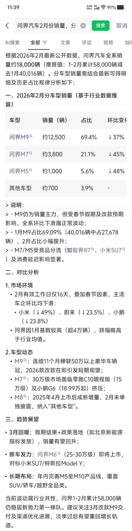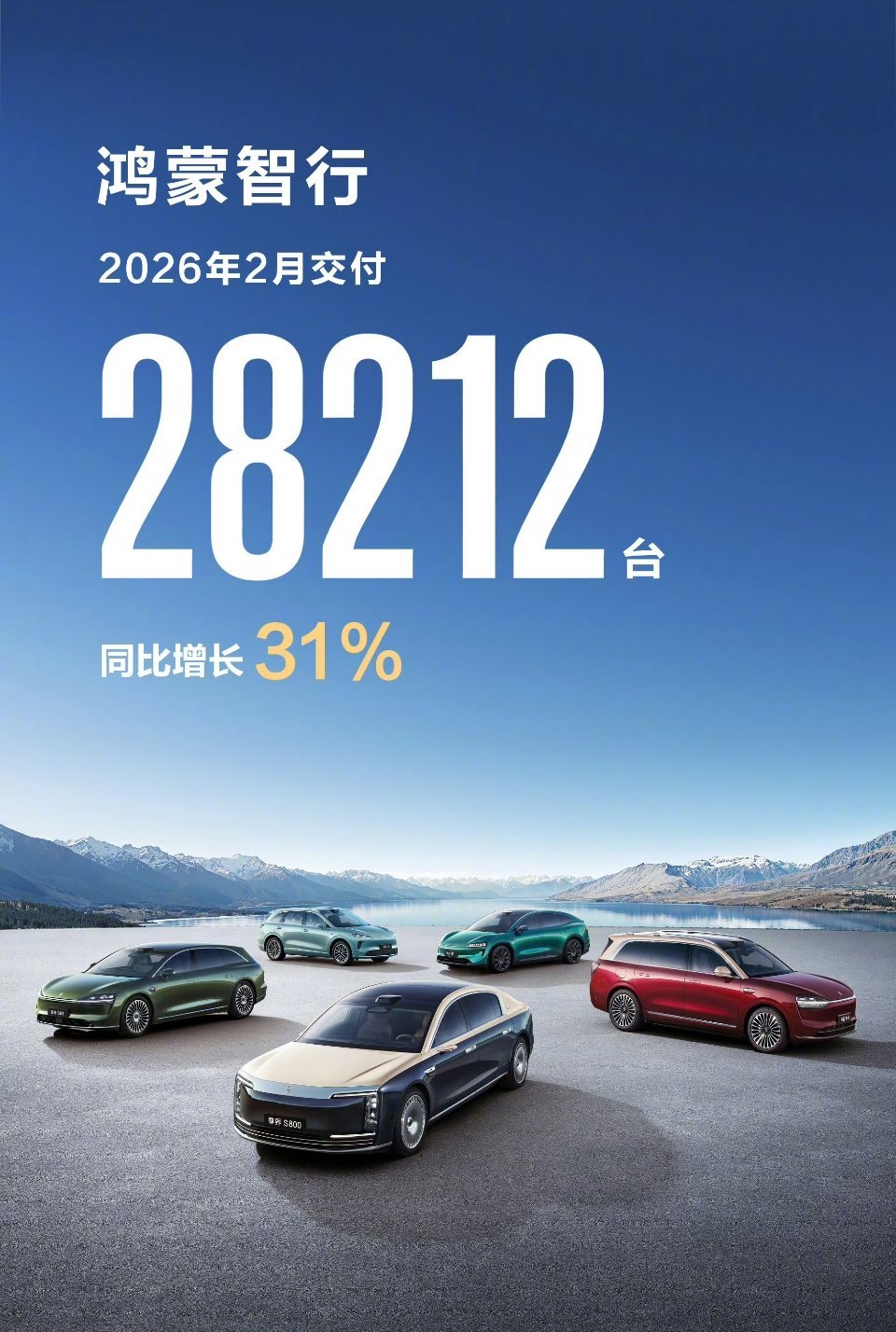 鸿蒙智行2月份交付:28212台,其中问界汽车17,984台,占了60%以上,问