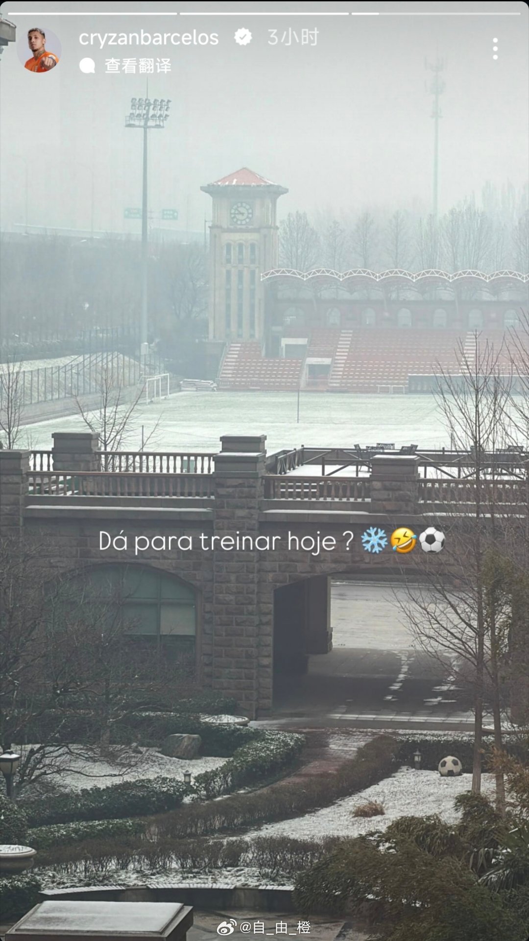 克雷桑动态两则:“醒来时突然下雪了❄️☃️”“今天可以训练吗❄️⚽️”自由橙山东泰山