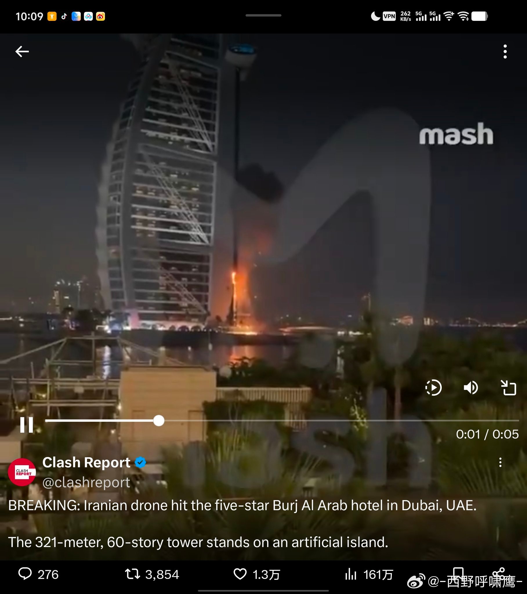 帆船酒店最新评价:一颗星,没有防空系统……