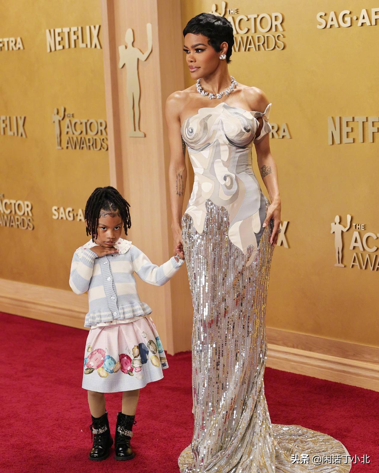 外娱资讯,缇雅娜·泰勒和女儿Rue Rose Shumpert于2026年3月2日出席了在美国洛杉矶圣殿礼堂举行的第32届美国演员奖(原演员工会奖)红毯。