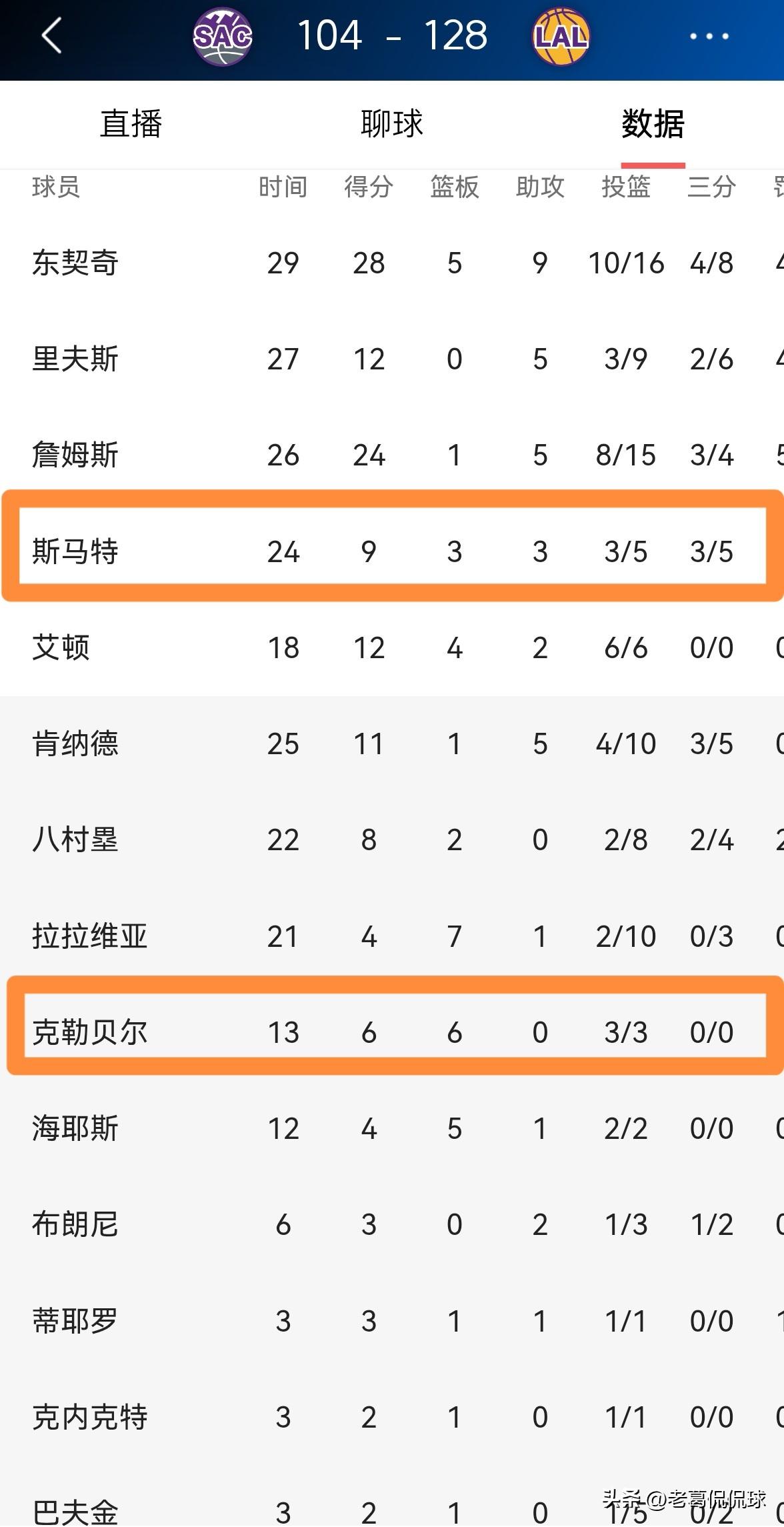 湖人官方实在是太懂事了!今天湖人在主场以128:104大胜国王,喜迎两连胜。在比赛结束以后,湖人官方在社媒上晒出了一张赢球海报,值得一提的是,两名角色球员斯玛特和克勒贝尔竟然成为了赢球海报的封面人物。 坦白说,湖人官方真是太懂事了,他们将赢球海报的封面人物给予球队的角色球员无疑会增强球队的凝聚力,而本场比赛湖人之所以能够获得一场酣畅淋漓的大胜,确实离不开角色球员的出色发挥。
