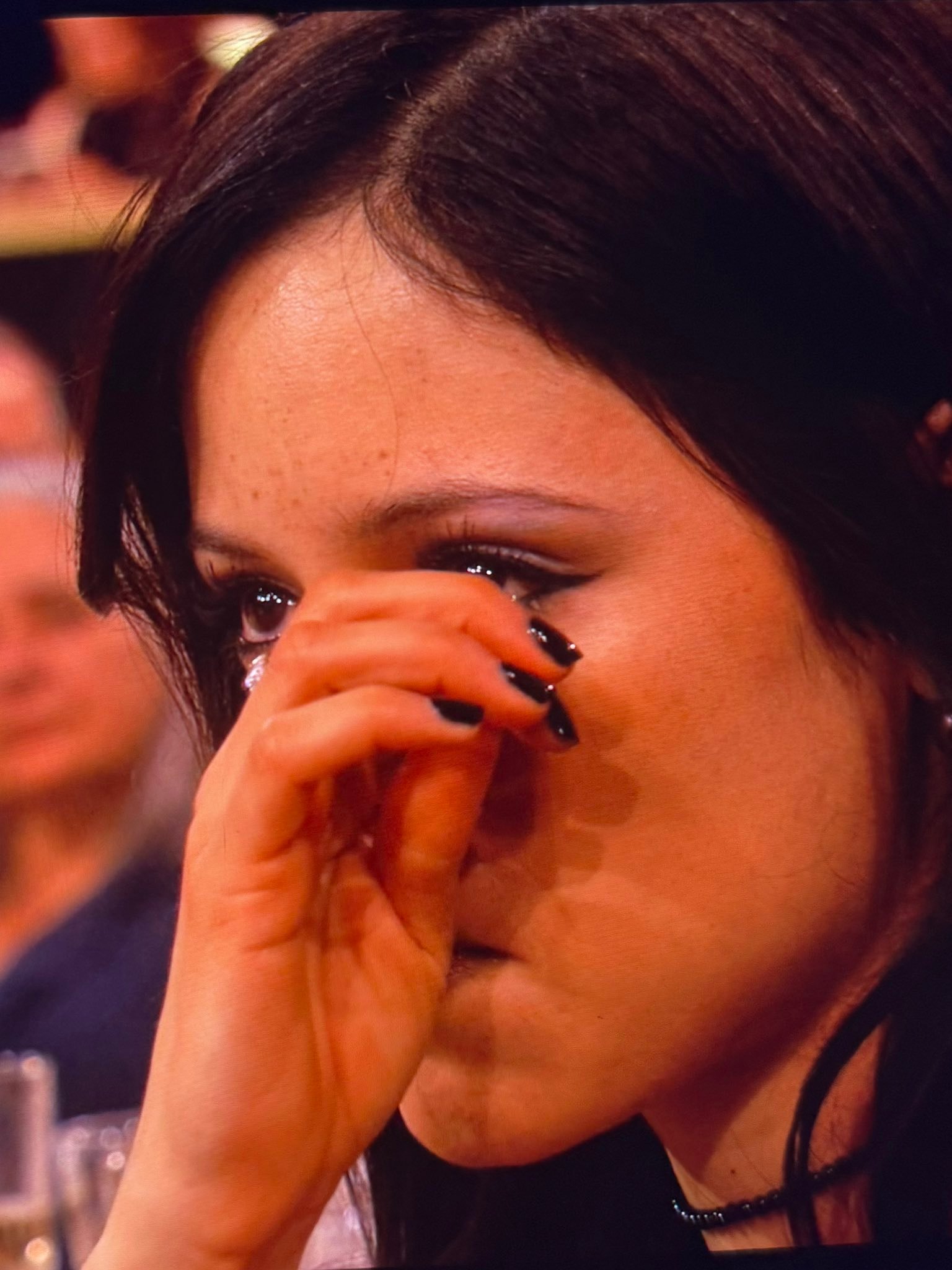 塞斯·罗根为《片厂风云》 已故搭档凯瑟琳·奥哈拉领奖(喜剧剧集最佳女演员)时,镜头拍到台下的珍娜·奥尔特加哭了