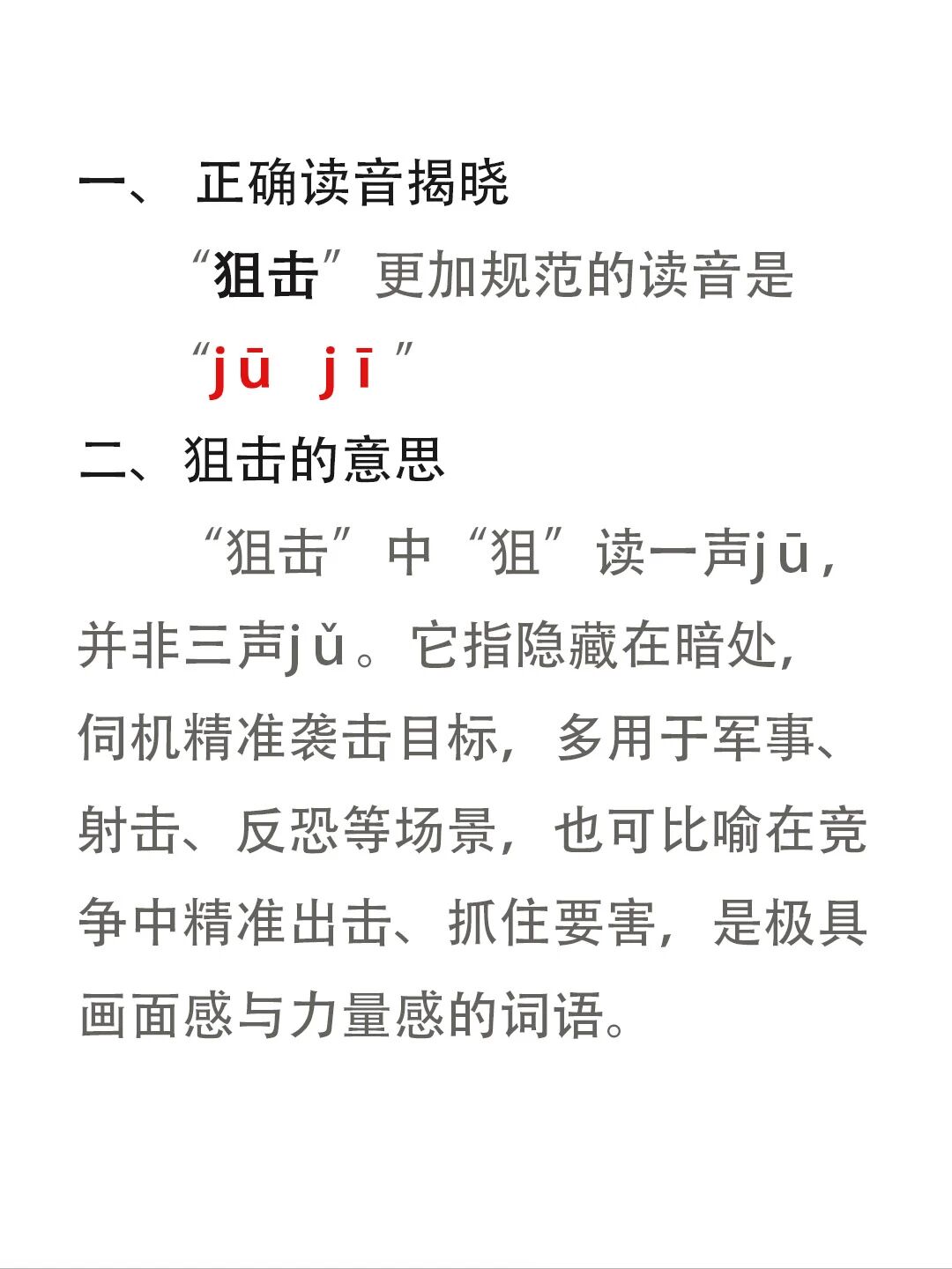 "狙击"不读jǔ jī,正确读音是什么?