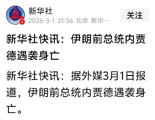 内贾德遇袭身亡,我感觉伊朗现总统是内鬼,已经是明牌了! 新华社快讯:据外媒3月1日报道,伊朗前总统内贾德遇袭身亡!我想说的是,不杀现总统佩泽希奇扬,却杀前总统内贾德,佩泽希奇扬就是美以最大的内鬼! 说白了,内贾德遇袭身亡这事,根本不是简单的政治暗杀,明眼人都能看出来,伊朗现总统佩泽希奇扬就是美以安插的最大内鬼,这事已经明牌到不能再明牌了! 新华社快讯里说了,据外媒3月1日报道,伊朗前总统内贾德遭遇袭击不幸身亡。 这消息一出来,全网都炸了,大家心里都犯嘀咕,为啥死的是前总统内贾德,而不是现任总统佩泽希奇扬? 要知道,最近这些年,伊朗死了不少高官,有军方的核心人物,有政坛的关键大佬,据说前前后后得有十几位,个个都是对美以态度强硬、一心维护伊朗利益的人,可偏偏佩泽希奇扬安然无恙,全程置身事外。 这真的太耐人寻味了,换谁都会多想,你想啊,袭击者要是真的想颠覆伊朗,按理说,现任总统才是核心目标,搞定了他,才能最大程度打乱伊朗的局势。 可他们偏偏绕开了佩泽希奇扬,专门去杀已经卸任的内贾德,这不就是明摆着“保护”现任、清除异己吗? 内贾德在位期间,一直跟美以硬刚,坚决反对西方霸权,是美以眼中钉、肉中刺,而佩泽希奇扬上台后,对美以的态度明显温和了不少,甚至有不少举措都让人怀疑是在向西方妥协,这很难不让人把两者联系起来。 其实不管在哪个国家,内鬼都是最可怕的存在,比外敌还吓人,所有国家都应该把清除内鬼当成第一核心,因为内鬼藏在内部,熟悉国家的核心机密、运作体系,他们的一举一动,都能动摇国家的根基,比外部势力的攻击更具破坏性。 伊朗这几年的动荡,说不定就有内鬼在从中作梗,泄露情报、配合外部势力搞破坏,不然也不会有这么多高官接连遇袭,而现任总统却能全身而退。 当然,咱们也得理性一点,虽然怀疑佩泽希奇扬是内鬼很合理,毕竟所有线索都朝着他去,但没有实打实的证据,伊朗革命卫队也不敢轻易下手处死他。 我感觉,要是没证据就贸然行动,伊朗内部肯定会乱套,派系争斗、民众恐慌,到时候只会让美以坐收渔利,这也是革命卫队一直克制的原因,毕竟稳定国家局势,比一时的泄愤更重要。 说真的,现在这个世界,压根就没有真正的王法可言,联合国说白了就是个摆设,遇到大国霸权,根本起不到任何作用。 就拿伊朗这事来说,美以在背后搞小动作,暗杀他国前总统,联合国也没给出什么实质性的表态,更别说制裁了。 所以说,唯有强军强国防,才能真正做到国泰民安,只有自己的实力足够强,才能抵御外部势力的挑衅,才能震慑内部的内鬼,让别有用心的人不敢轻举妄动。 以上全是我个人看法,不代表任何官方立场,也没有虚构任何故事,只是基于已知信息的解读。 内贾德遇袭背后到底还有多少隐情?佩泽希奇扬真的是内鬼吗?欢迎大家在评论区留下自己的观点,一起交流探讨。