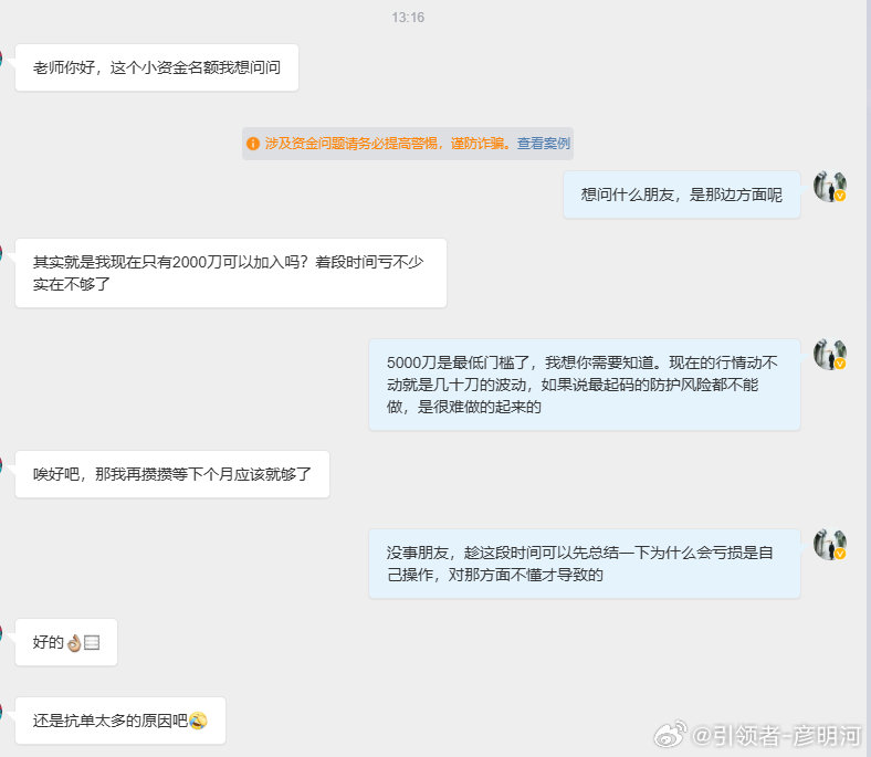 现在的行情不同以往,波动大太大区间宽,明河设置门槛是因为更好的去做风控,望各位理解!大家的钱都不容易,更要为了你们去负责,所以实在想加入的朋友可以再攒攒!