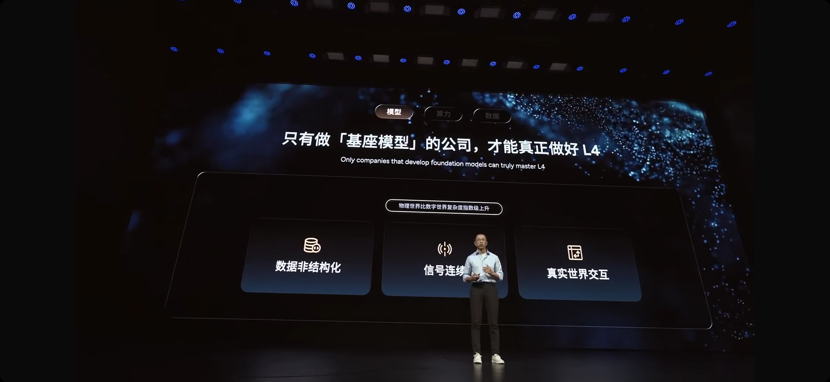小鹏的第二代VLA是多模态的大语言模型,这个模型可以输出语音、视觉动作、行为,所以它是小鹏的模型基座,可以服务智驾、智能座舱、机器人等等,