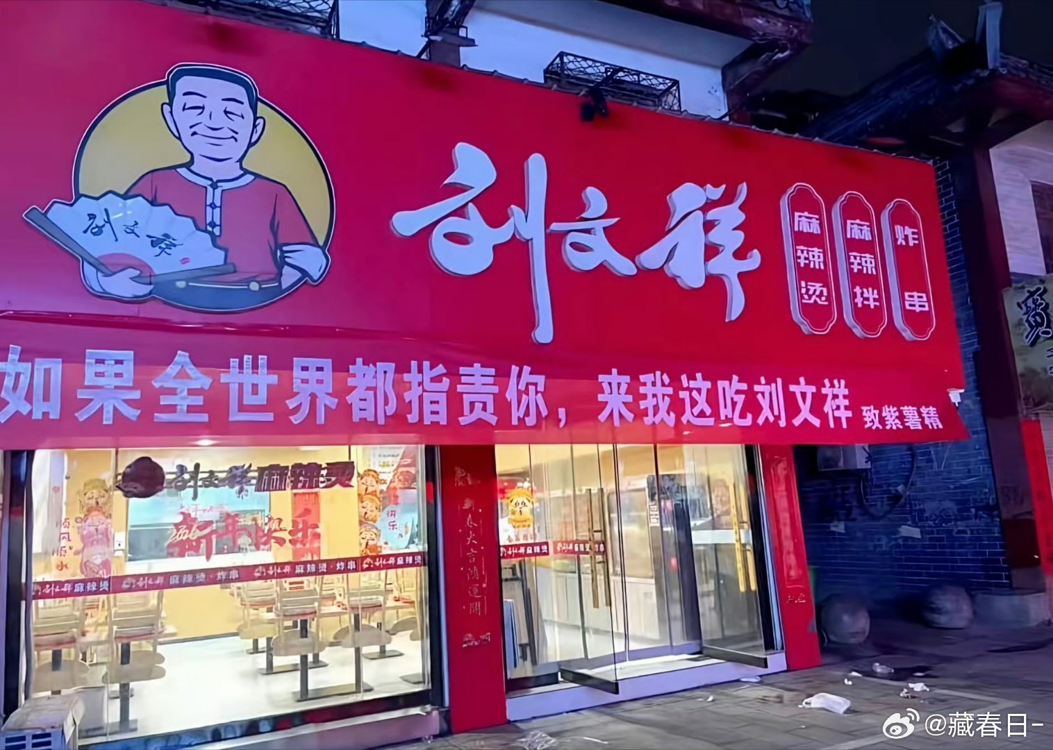 刘文祥 紫薯精一句“全世界指责你,我带你吃刘文祥”,直接把麻辣烫店干到爆单关店!看得我也想吃了,就是不知道外卖还有没有