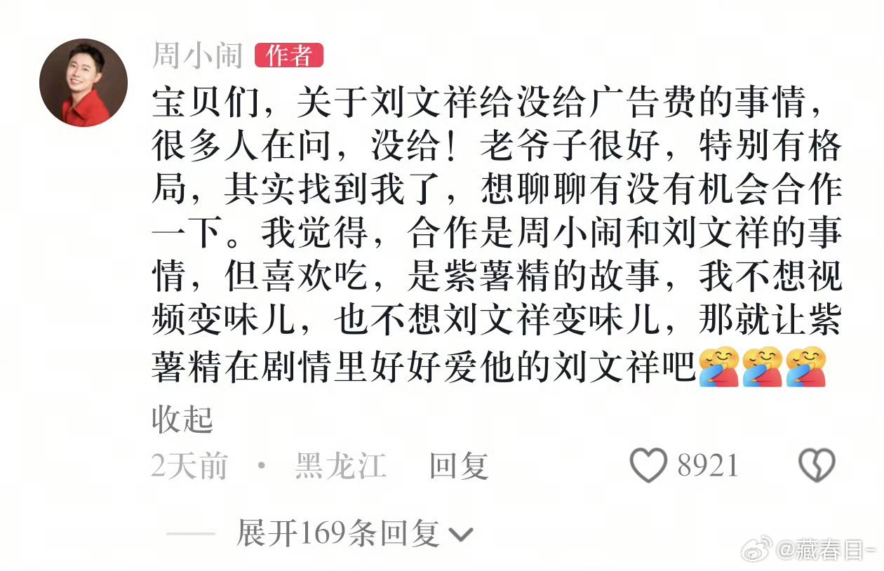 刘文祥 紫薯精一句“全世界指责你,我带你吃刘文祥”,直接把麻辣烫店干到爆单关店!