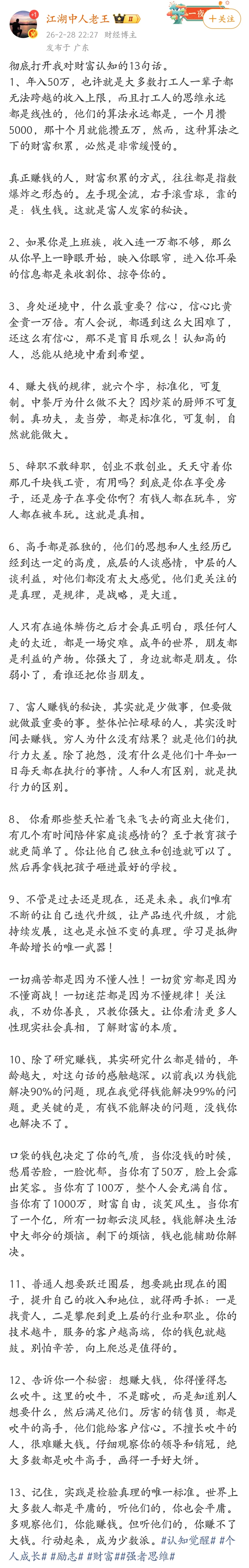 彻底打开我对财富认知的13句话。