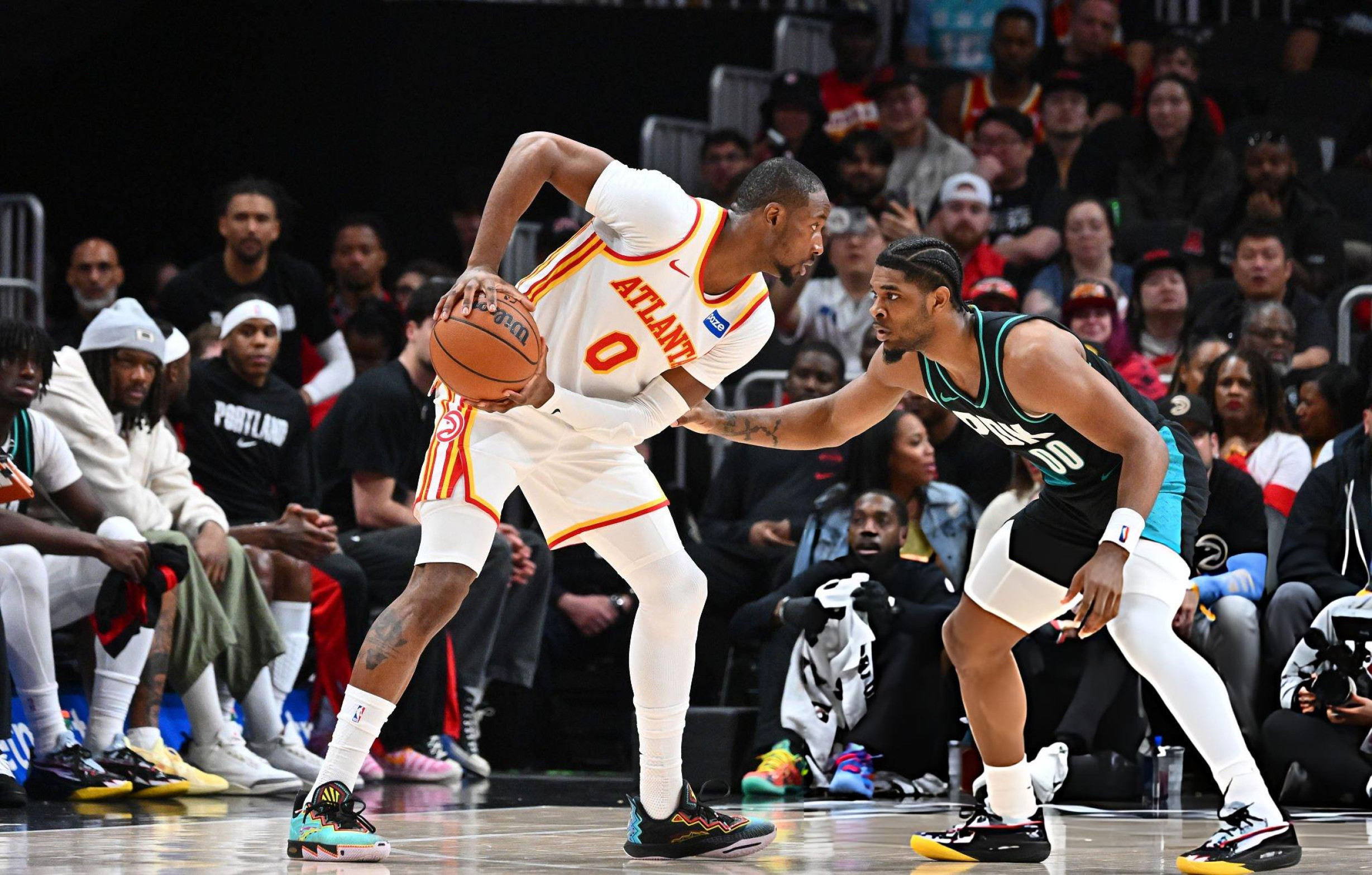 Jonathan Kuminga 今日上脚 Nike KAI 2 “回忆”配色登场。有意思的是,比赛期间老鹰主场球迷竟齐声高喊:“谢谢勇士!”——这波现场互动,属实有点搞勇士心态~