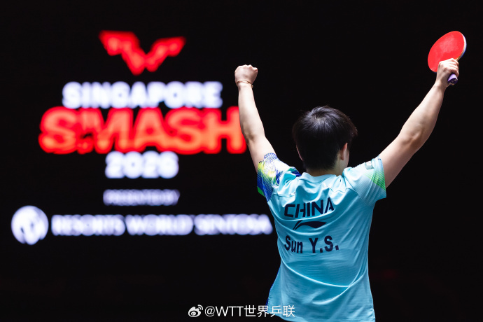 【#回顾孙颖莎新加坡站冠军之路#】据 WTT新加坡大满贯2026女单冠军之路🏆——3-1奥拉万·帕拉南(THA)➡️3-1伊丽莎贝塔·萨马拉(ROU)➡️3-1石洵瑶(CHN)➡️4-2早田希娜(JPN)➡️4-1陈熠(CHN)➡️4-2王曼昱(CHN)