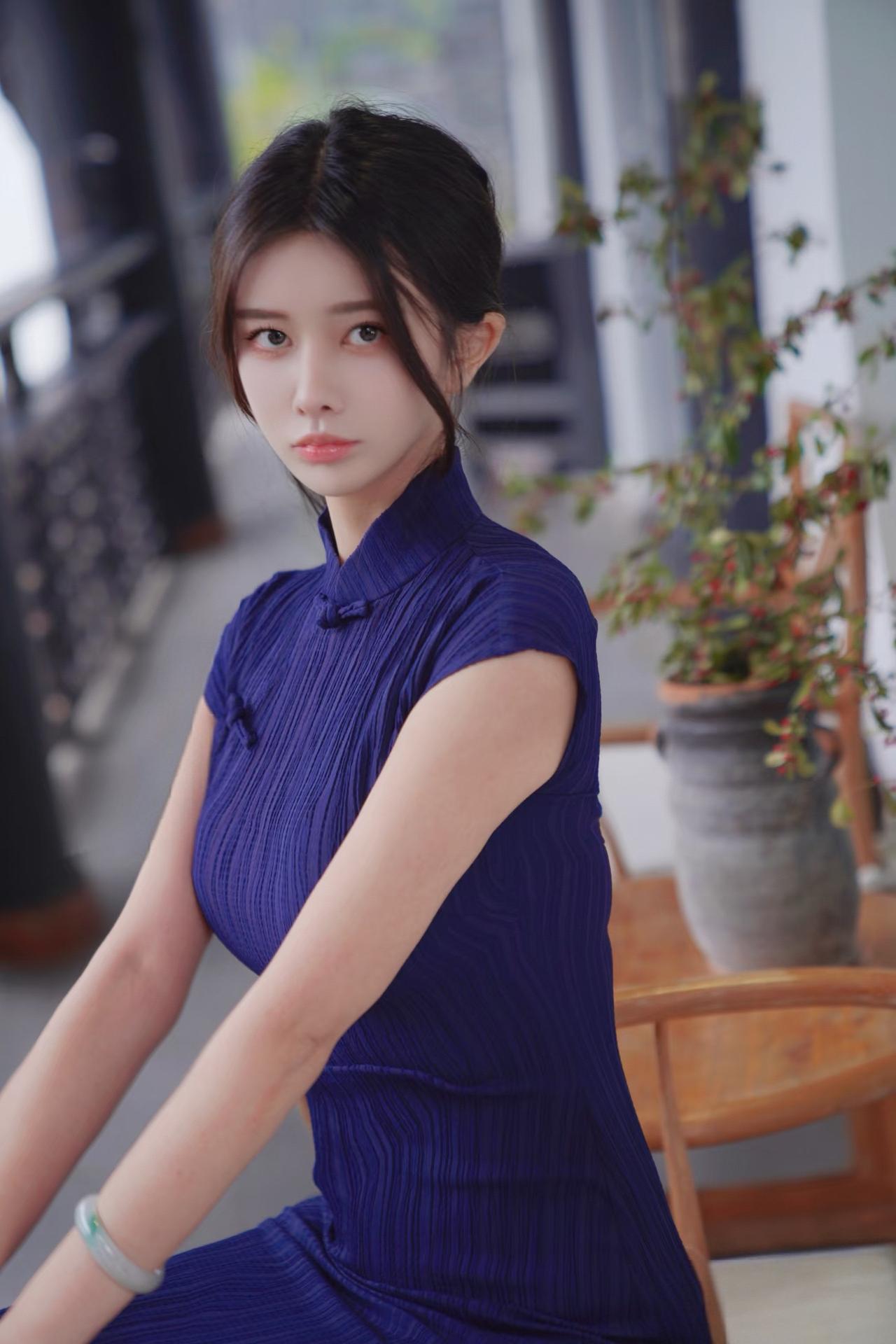 梦幻蓝裙少女,优雅气质满满!🌸✨