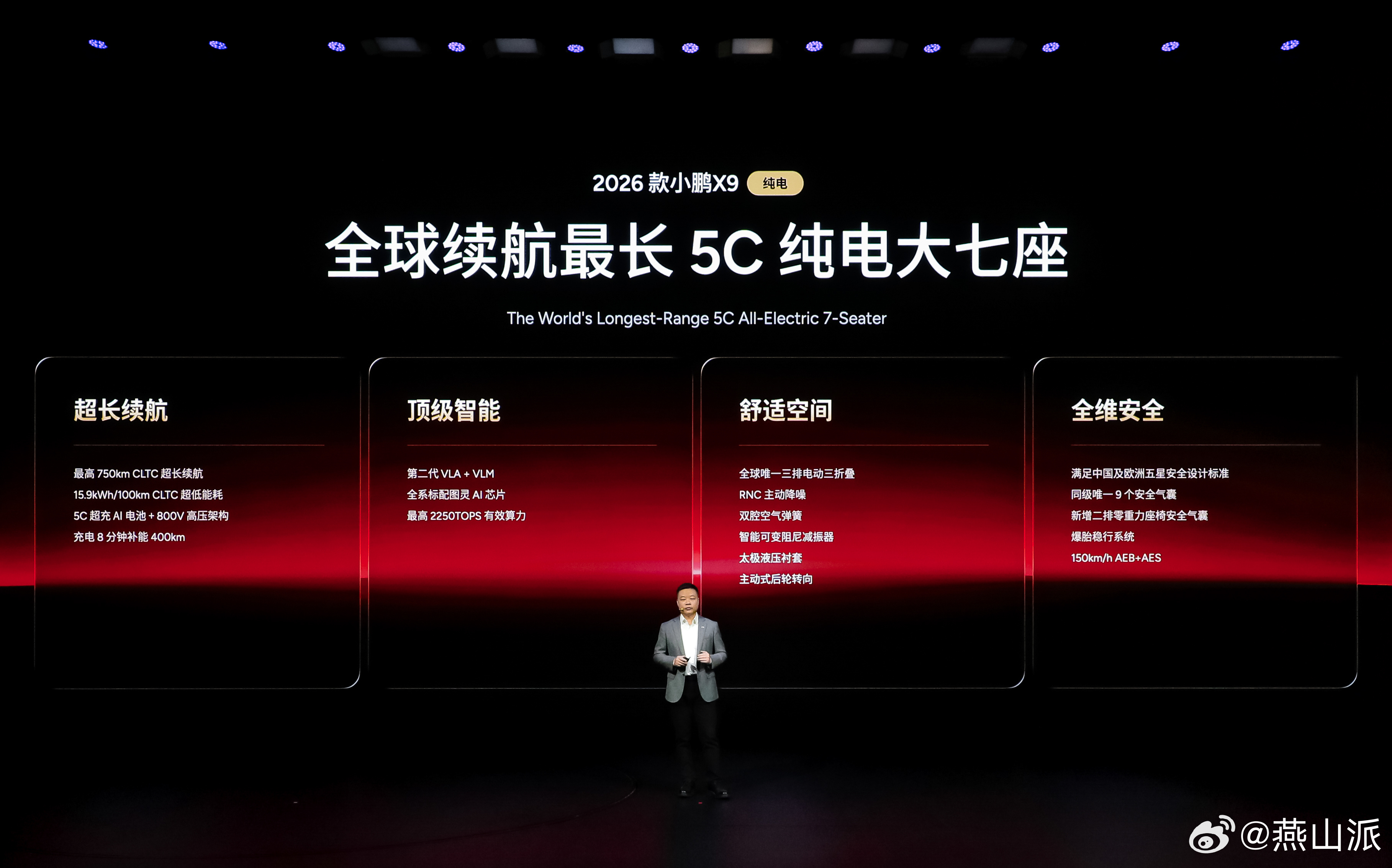 全系标配图灵 AI 芯片,最高有效算力达2250TOPS,搭载第二代VLA物理世界大模型小鹏智驾负责人称拉开差距的时刻到了26款小鹏X9纯电全面对齐增程小鹏第二代VLA妈妈都爱开的国民智驾