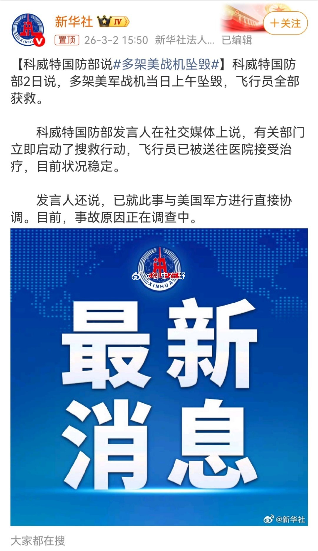 多架美战机坠毁不是,你都掌握制空权了,连续玩这种乌龙?除了史密斯专员平账,我暂时