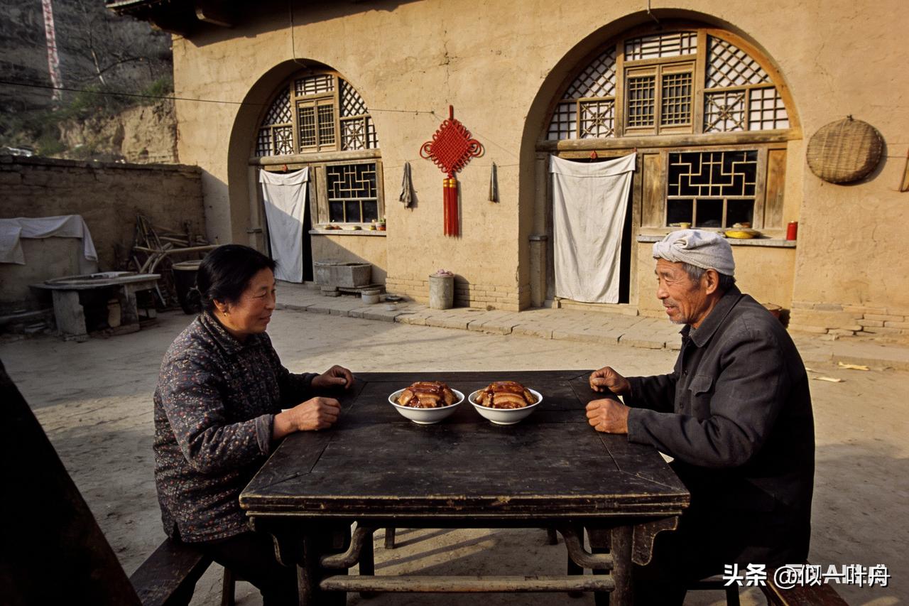你们家乡的春节有什么样的老故事。今天我讲一个上世纪80年代陕北过年的老故事。 两碗肉里的年 上世纪八十年代初的陕北,年味儿是从蒸笼里冒出来的。 张老汉和老伴无儿无女,长辈也早已不在,一年到头,全靠乡里乡亲帮衬。忙完一年,老两口就想好好备几桌年饭,谢一谢身边的好心人。 粘豆包蒸了一屉又一屉,花馍捏得周周正正,可真要做菜时,却犯了难。就买了两斤肉,一碗蒸肉、一顿饺子,便剩不多了。请客吃饭,桌上没肉,总不像个样子。 老伴灵机一动:把肉切得薄薄的,用线串好,铺在腌菜上蒸到半熟;再做一碗酥肉,也串好、蒸半熟。 这样一来,一碗变两碗,端上桌体面好看。客人客气,都不好意思多夹,下一桌还能再用。 张老汉听了,直摇头:都是帮过咱的人,怎能这么算计。可家里不宽裕,钱得省着花,犟来犟去,终究还是依了老伴。 正月初二,客人如约而至。一盘炒白菜,一盘凉拌三丝,一盘豆腐,一盘粉条,一盘豆芽,一盘炸红薯,再配上热乎的粘豆包、白腾腾的蒸馍,最后端上那两碗油光锃亮的肉,一盘撒着亮晶晶白糖的炸油糕,和一碗热乎乎的丸子汤。 窑洞里暖烘烘的,酒香、菜香、话家常的声音混在一起。大家都看在眼里,谁都明白老两口的难处,筷子轻轻一碰,谁也不肯多夹那两片肉。 菜是朴素的,肉是精巧的,年却是真心的。那时候的年,不富裕,却最有人情。穷日子里的体面,艰难里的厚道,都藏在这两碗肉、一桌家常菜里,暖了一整个冬天,也暖了好多年。