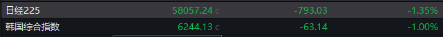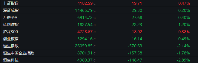 此前,亚太股市普遍走低。日经225指数跌超1%,韩国综合指数跌1%。A股方面,沪指逆市上涨,深证成指、科创综指、创业板指均走低;港股方面,恒生指数、恒生科技指数均跌超2%。