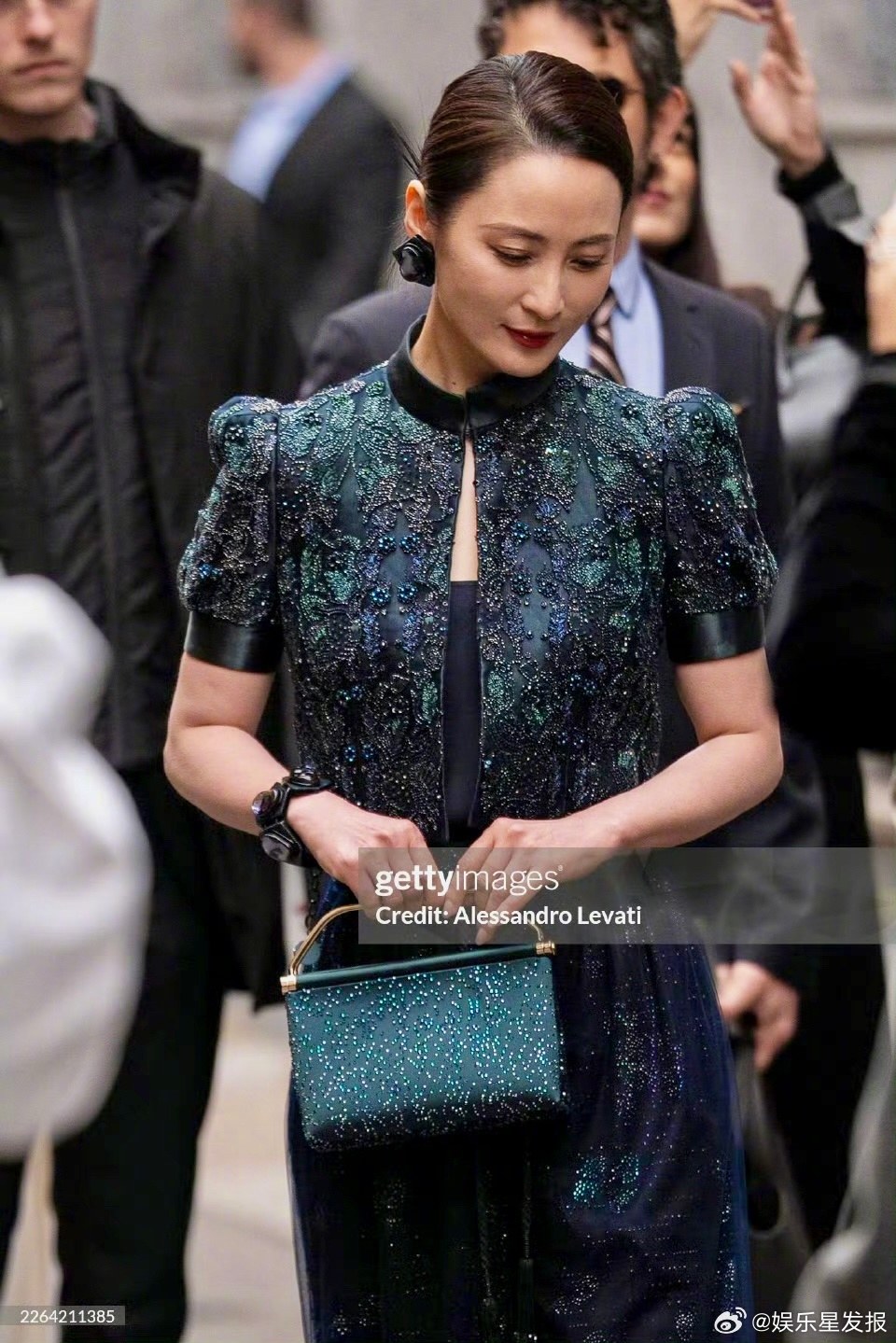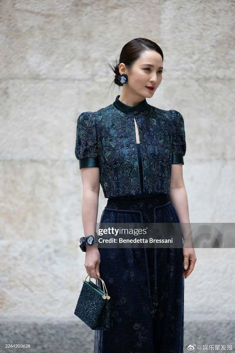 蒋勤勤扛住了G社镜头 蒋勤勤这组G社生图真的杀疯了!墨绿色刺绣长裙配利落盘发,东