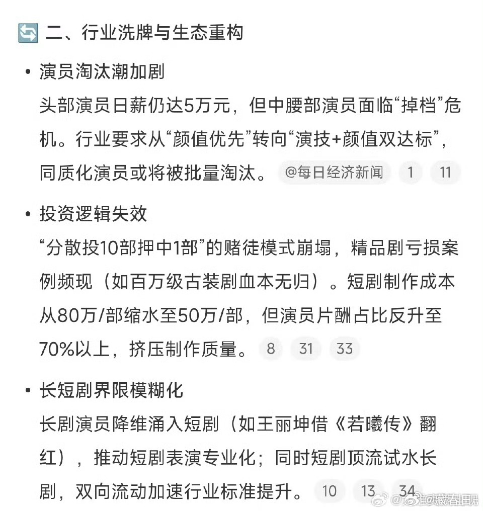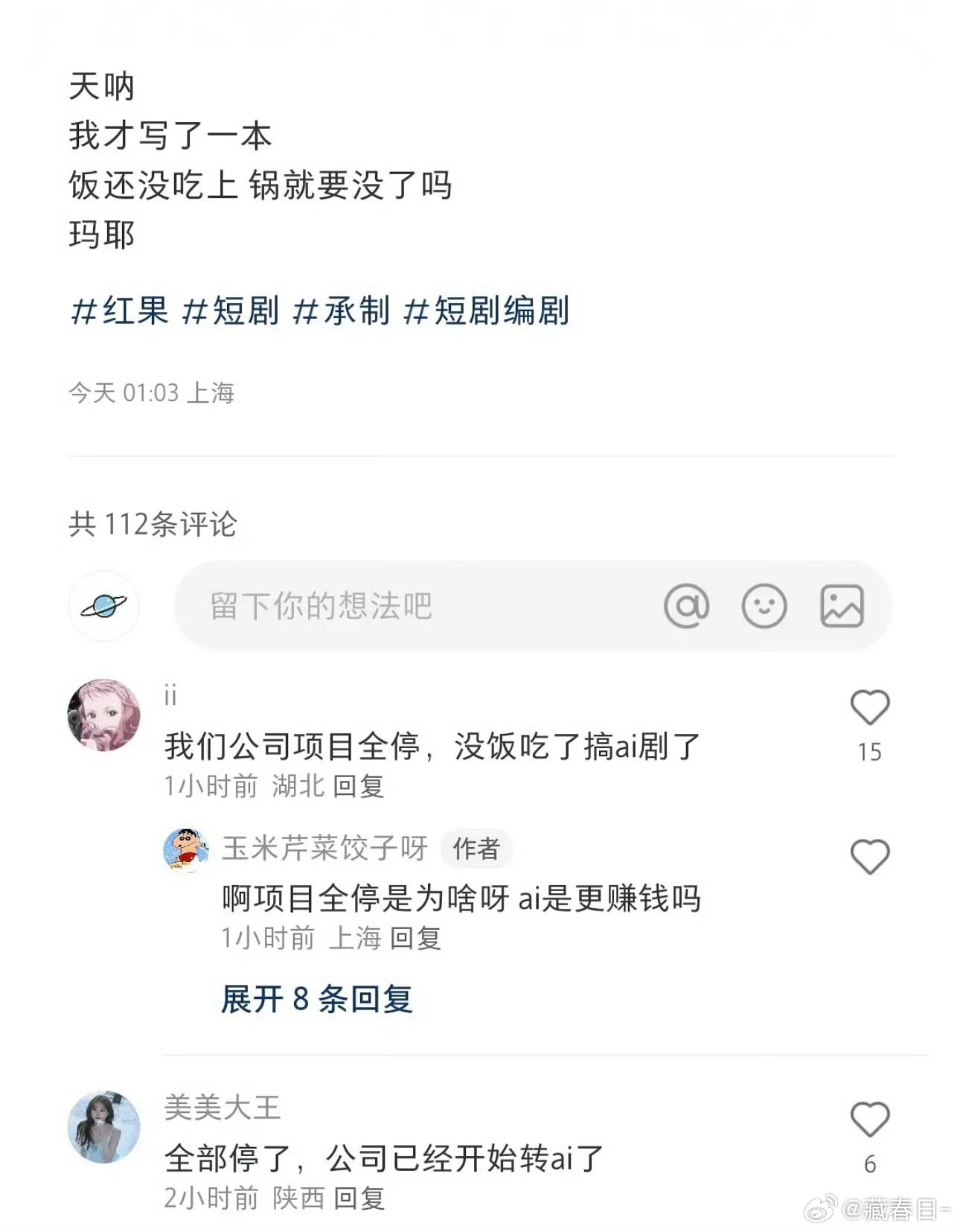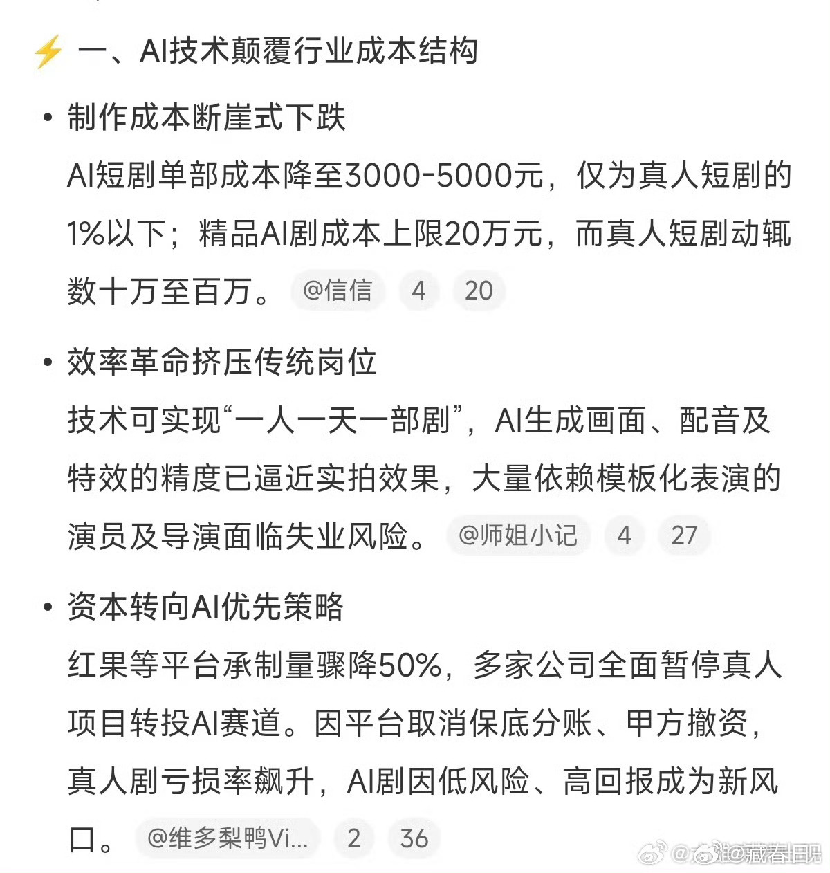 短剧 变天短剧的崛起用了不到一年,AI的降维打击也用了不到一年。剧本、拍摄、表演