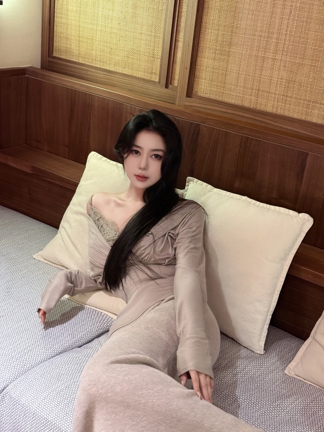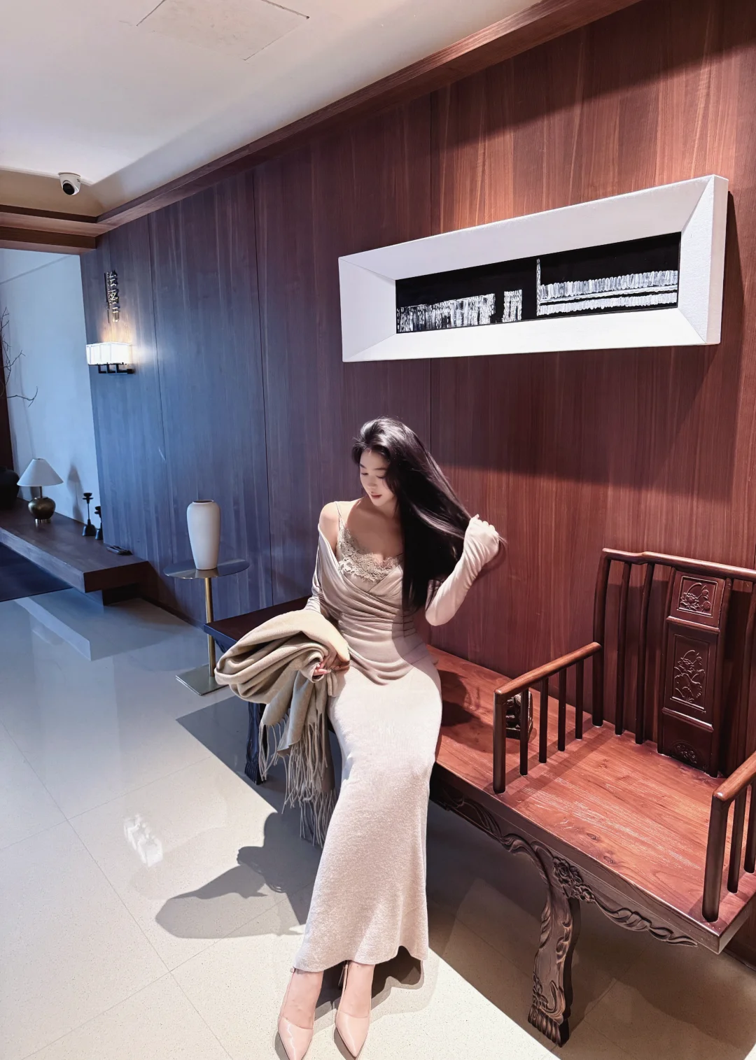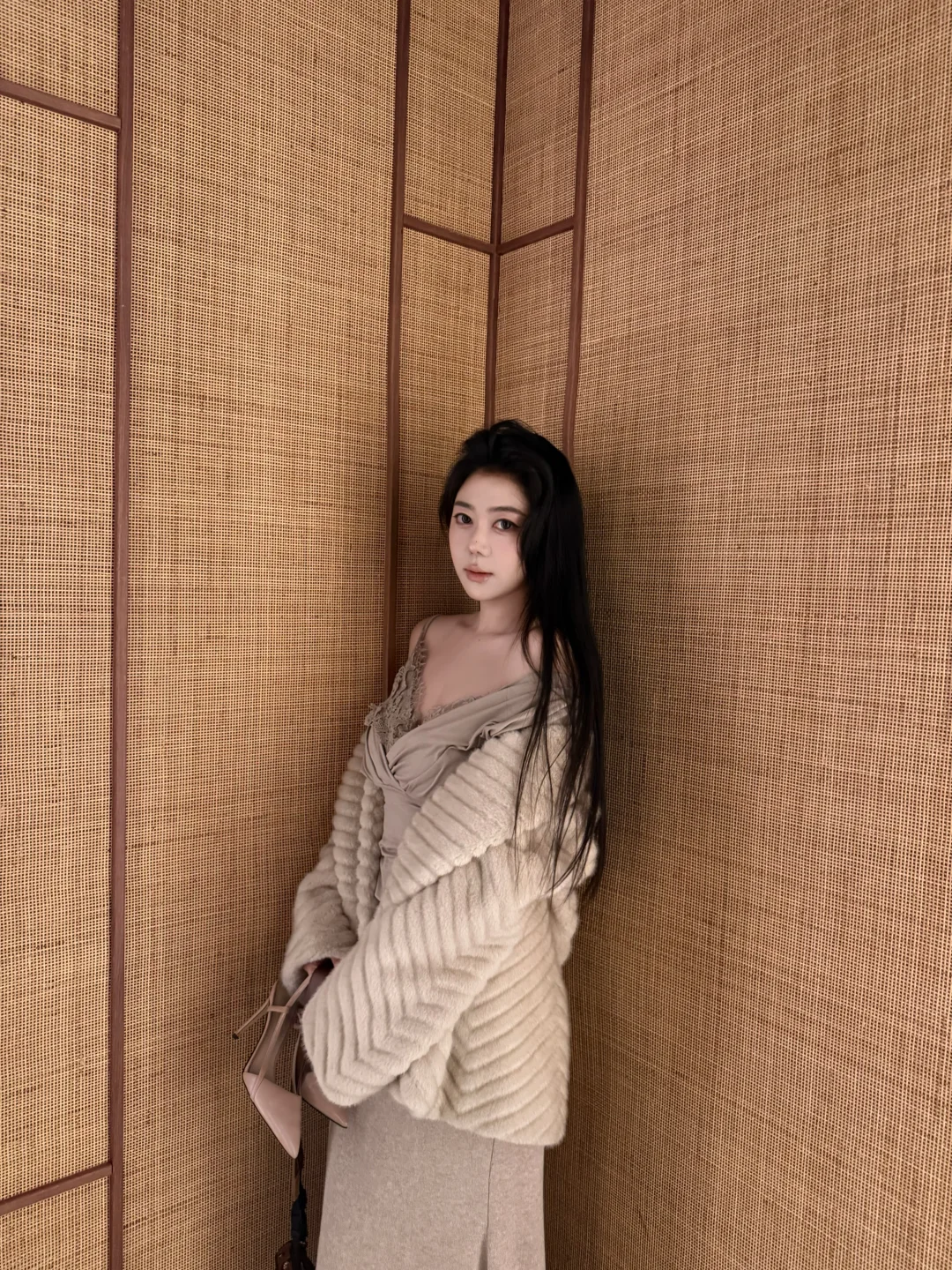 不是那种冷冰冰的极简风,而是真正有温度的禅意侘寂风。进门就闻到淡淡的木质香,脚下是木质地板,墙面是带着纹理的蚕丝纹墙,还有手工编织藤席,甚至感觉回到了古代——那种时间沉淀下来的安静感,真的让人一下子就不浮躁了。