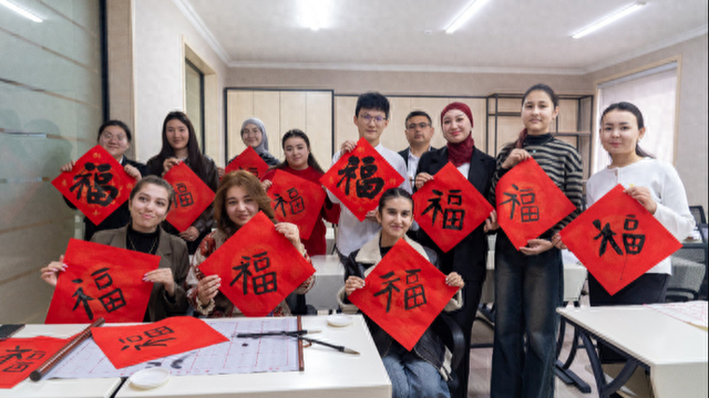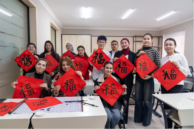 在撒马尔罕外国语大学,支队以新春为契机,向当地师生分享贴春联、吃年夜饭等中国年俗,手把手指导书写“福”字,墨香间定格中乌青年友好瞬间;在撒马尔罕孔子学院,队员与当地师生亲切交流,见证中文教育成为中乌文化交流的重要纽带;在撒马尔罕造纸厂,队员亲手体验古法造纸工序,在指尖触感中感受丝路工艺的匠心传承与文明交融。支队还与乌兹别克斯坦青年事务署交流公益项目,并怀着肃穆的心情慰问清华乌兹别克斯坦籍学子诗琳的家属,追忆这位文化交流使者,让清华“厚德载物”的精神在跨文化语境中传递温情。真诚与热情搭起友谊之桥,让中乌友好的种子在两国青年心中生根发芽。
