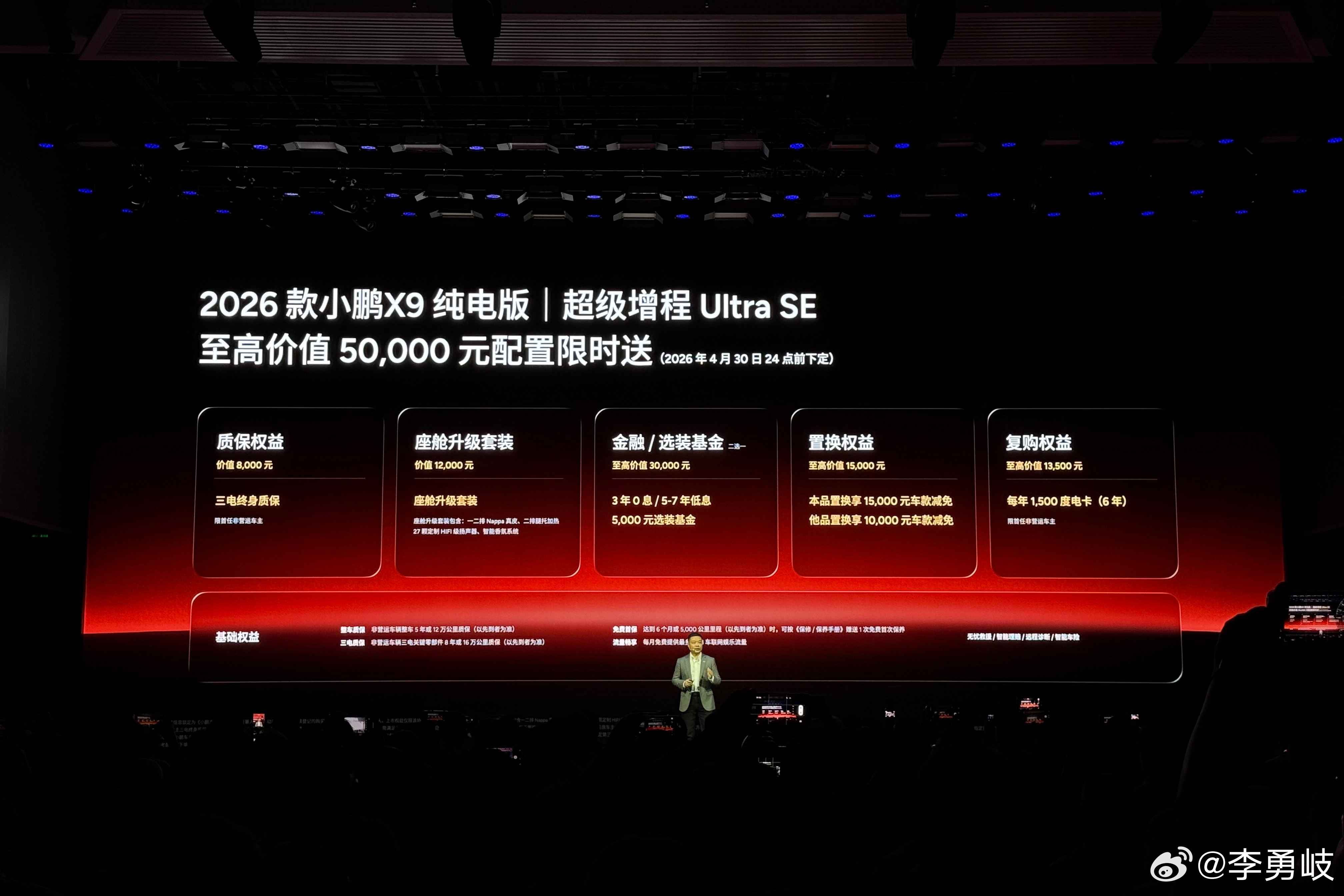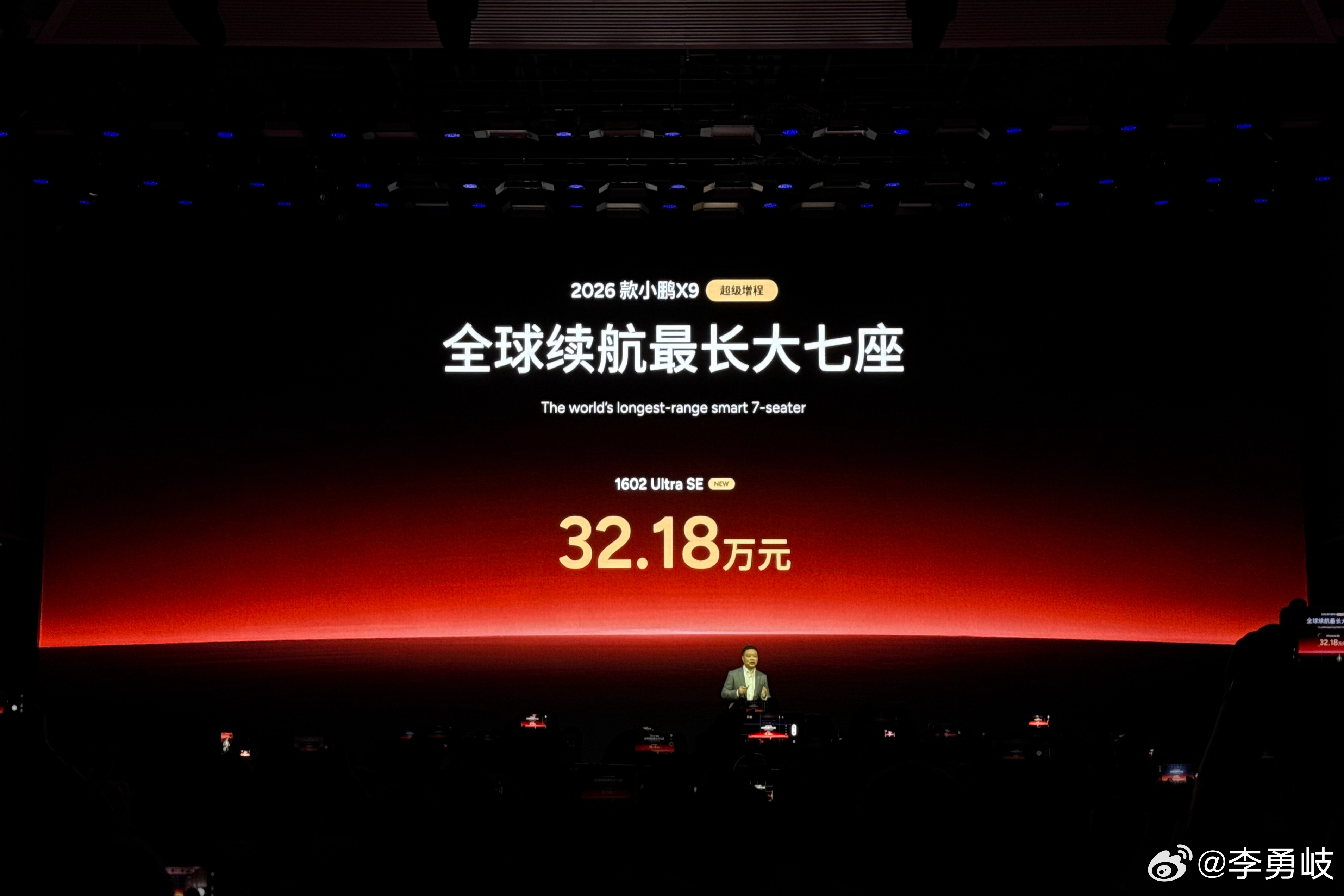 开启全球自动驾驶元年!小鹏第二代VLA本月推送,2026款小鹏X9纯电版正式上市:30.98万起售,另外,2026款小鹏X9超级增程新增1602 Ultra SE版本,价格为32.18万元!新款小鹏X9纯电版上市30.98万起2026款小鹏X9,两种动力,同一个旗舰标准,作为小鹏汽车的科技旗舰,希望以更全能的产品力,带给大家庭更舒适、更越级的产品体验。何小鹏表示:“小鹏第二代VLA是面向完全自动驾驶的第一个版本,它将以小鹏从未有过的速度快速迭代。完全自动驾驶将在未来1-3年内完全到来,自动驾驶将成真正成为人们的日常出行习惯。”目前,搭载小鹏第二代VLA的Robotaxi已开启公开道路测试,今年内小鹏Robotaxi将开启试运营。在全球部署上,小鹏第二代VLA即将开启全球路测,并计划于2027年开启全球交付。此外,大众将成为小鹏第二代VLA的首发客户。2026年,是小鹏汽车面向“物理AI世界出行探索者”全速进发的一年。随着小鹏第二代VLA全量推送,2026款小鹏X9纯电版上市,小鹏将持续稳进破局,推动技术迭代与“一车双能”战略落地,为全球用户创造更智能、更美好的出行体验。小鹏智驾负责人称拉开差距的时刻到了