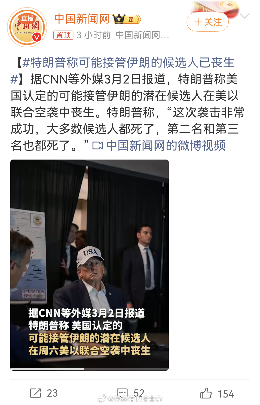 特朗普称可能接管伊朗的候选人已丧生哈哈哈,果然是这样,被我猜中了,美国要扶持自己的人上去,结果不幸给炸死了
