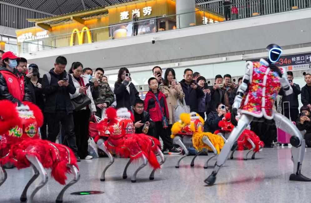 返乡旅客张先生说:“能在西安北站看到春晚同款机器人,特别自豪!国家的科技进步,实实在在走到了我们老百姓的出行路上,让旅途更有幸福感。”