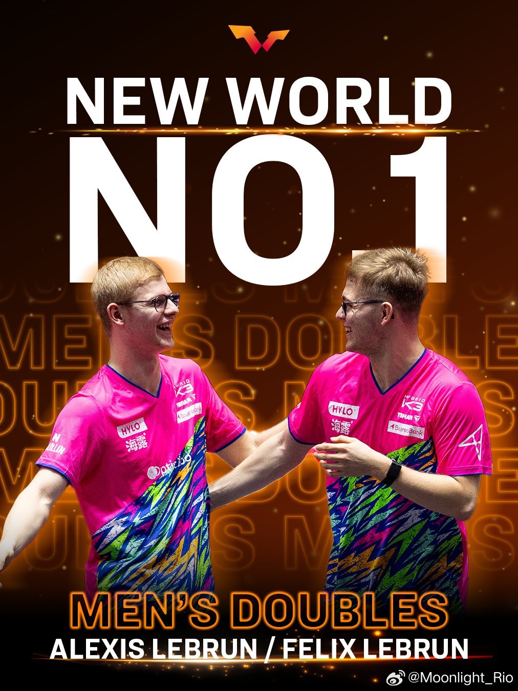 wtt:世界之巅! 🌍✨恭喜新晋世界排名第一的组合! 👑男子双打世界排名第一
