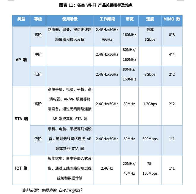 1、Wi-Fi芯片不同应用场景基本情况