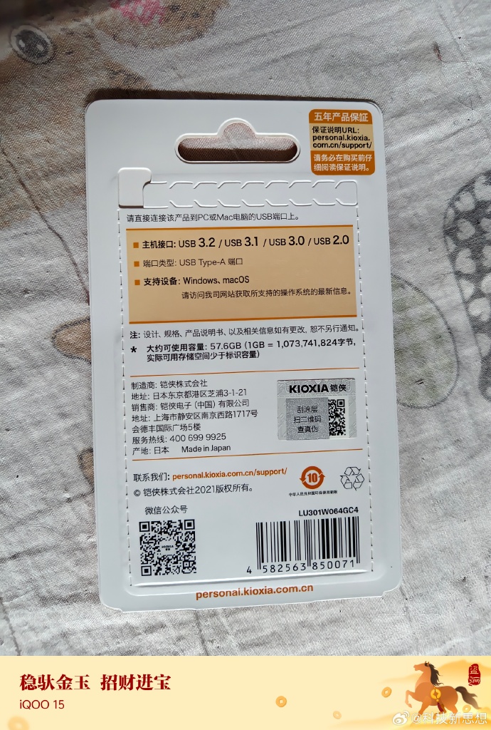 非常荣幸在【骏马迎春,数据奔腾 |会员感恩回馈抽奖盛典】活动中,抽到了铠侠U301隼闪U盘64GB。在此对铠侠俱乐部说声谢谢,在新的一年,我会继续一如既往地支持一直铠侠,祝铠侠俱乐部的朋友新春快乐,万事顺意。@KIOXIA铠侠中国@热点科技