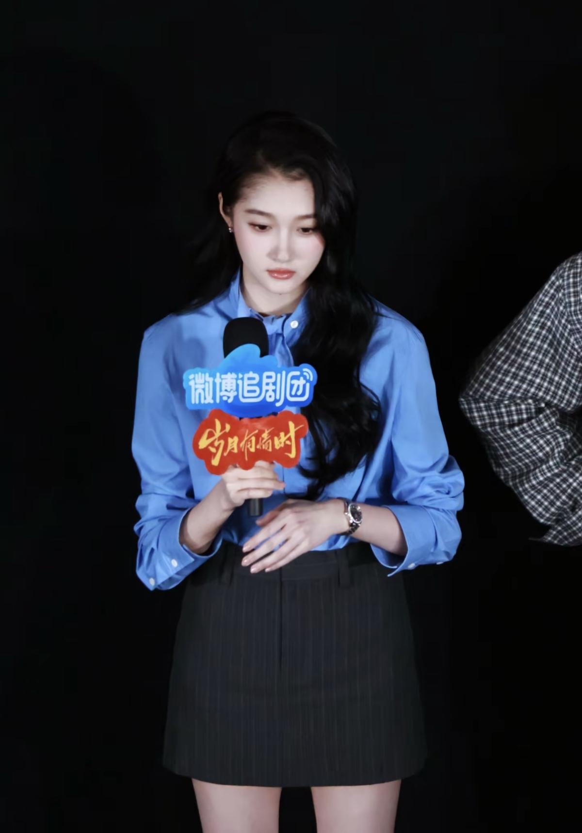 关晓彤的生图永远值得信任!蓝色衬衫穿出了清冷学姐感,肤白貌美,状态绝了[赞]从镜头里到舞台上,关晓彤把严晓丹的干练感拿捏住了,这波宣传造型我给满分[给力]娱乐明星