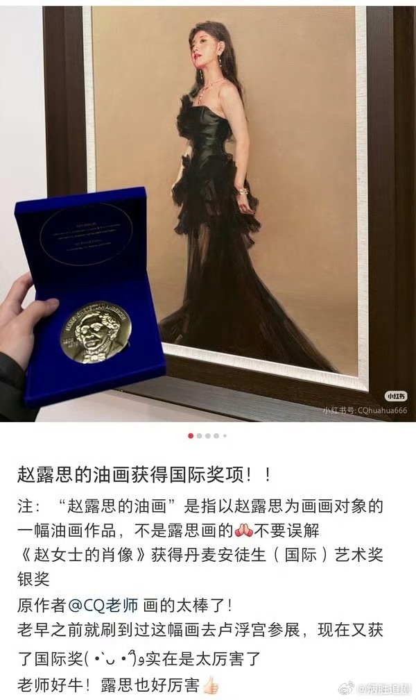赵露思油画获奖受邀在卢浮宫展出,真好