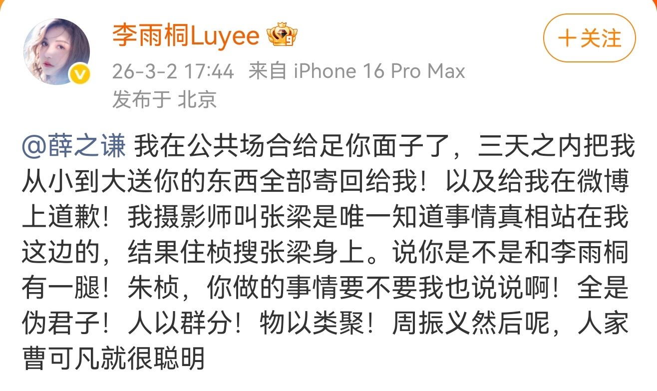 李雨桐实名报案薛之谦重婚罪 现在娱乐圈这些热搜都有点看不明白,包括前几天王一博那个,看半天没看明白...