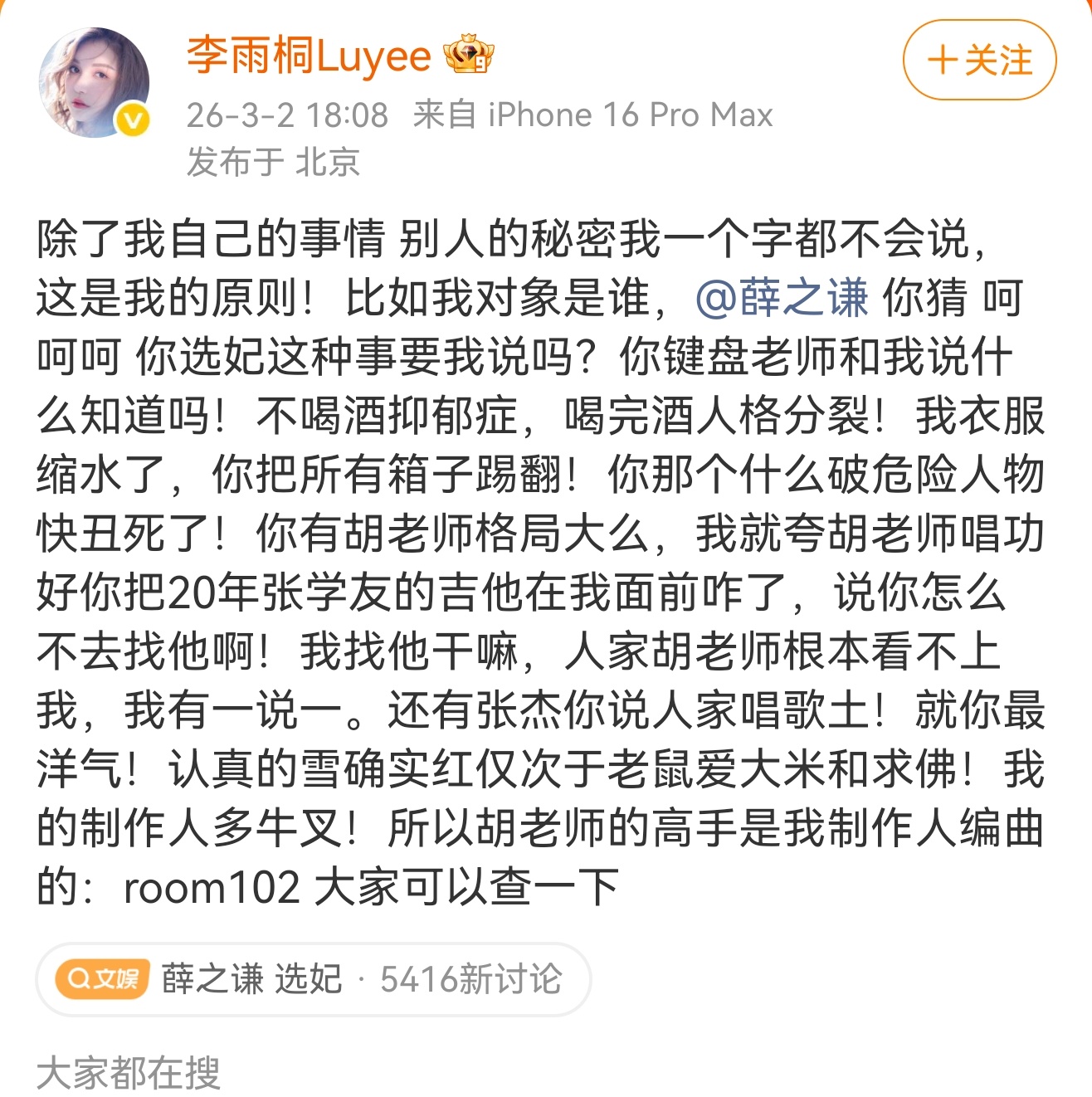 李雨桐实名报案薛之谦重婚罪 现在娱乐圈这些热搜都有点看不明白,包括前几天王一博那