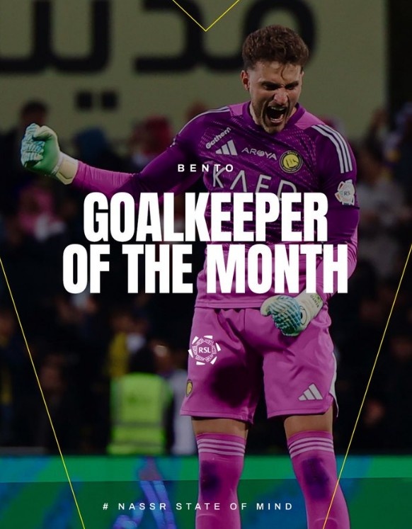 5战全胜均零封,利雅得胜利门将本托当选沙特联2月最佳门将