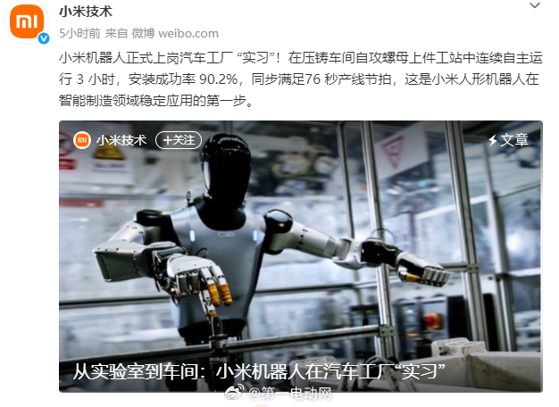 很快你买的小米汽车就可能全是机器人造出来的,也不仅是小米,不少品牌都开始让机器人
